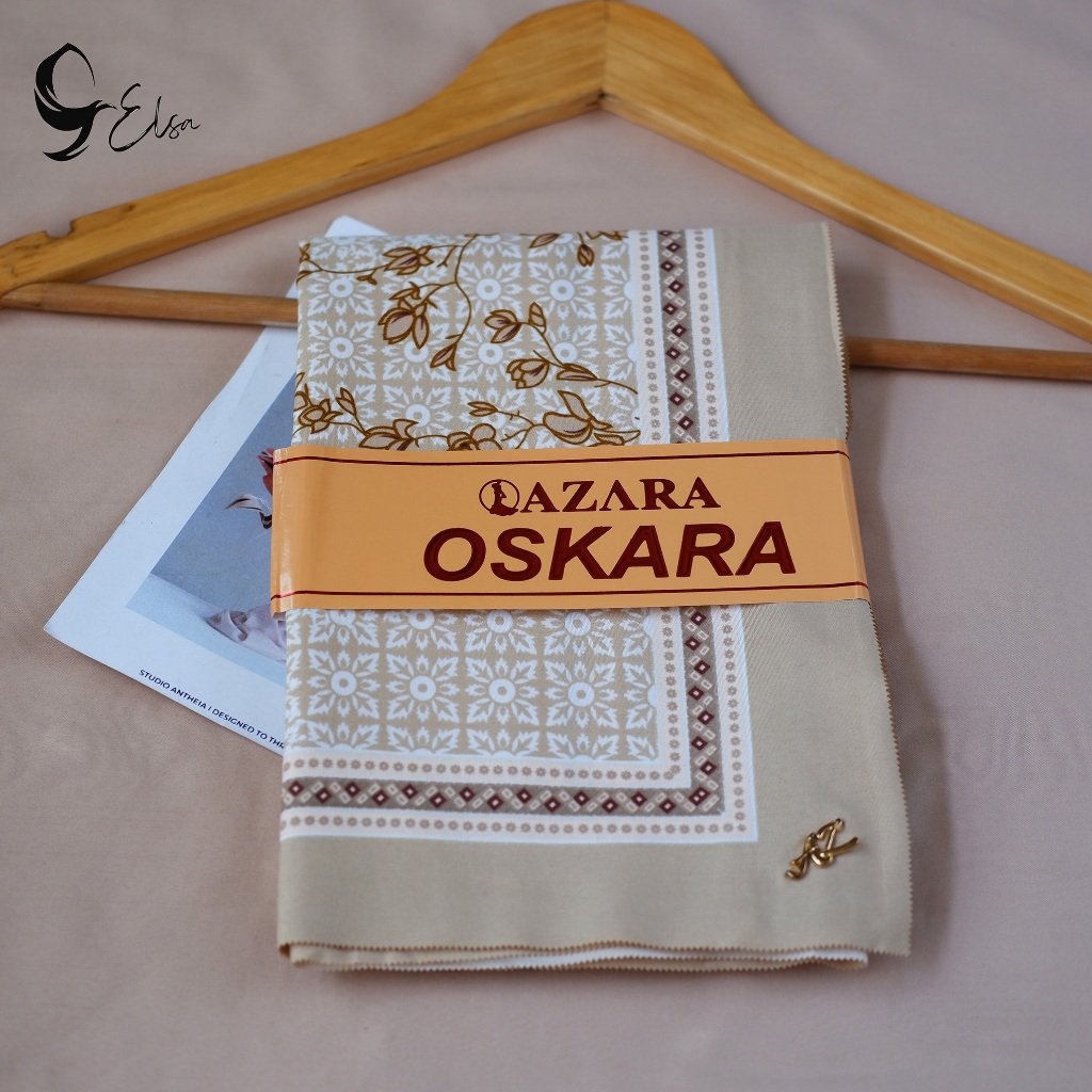 AZARA Metal Logo Square Hijab with Oskara Motif 110 X 110 CM Square Hijab