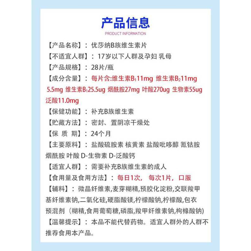 B-Complex Vitamin Tablets for Adults B12 Folic Acid B Group USANA Official Genuine Product