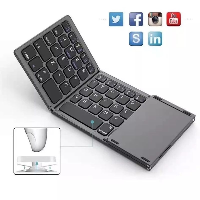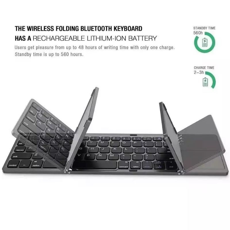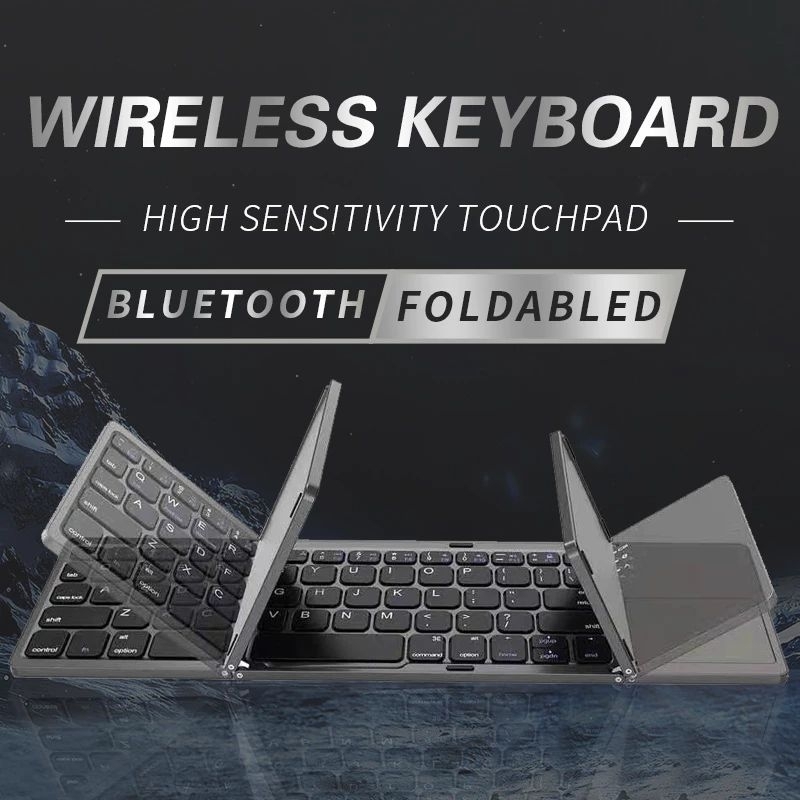 B033 Portable Mini Three Folding Bluetooth Keyboard Wireless Foldable Keyboard With Touchpad (New)
