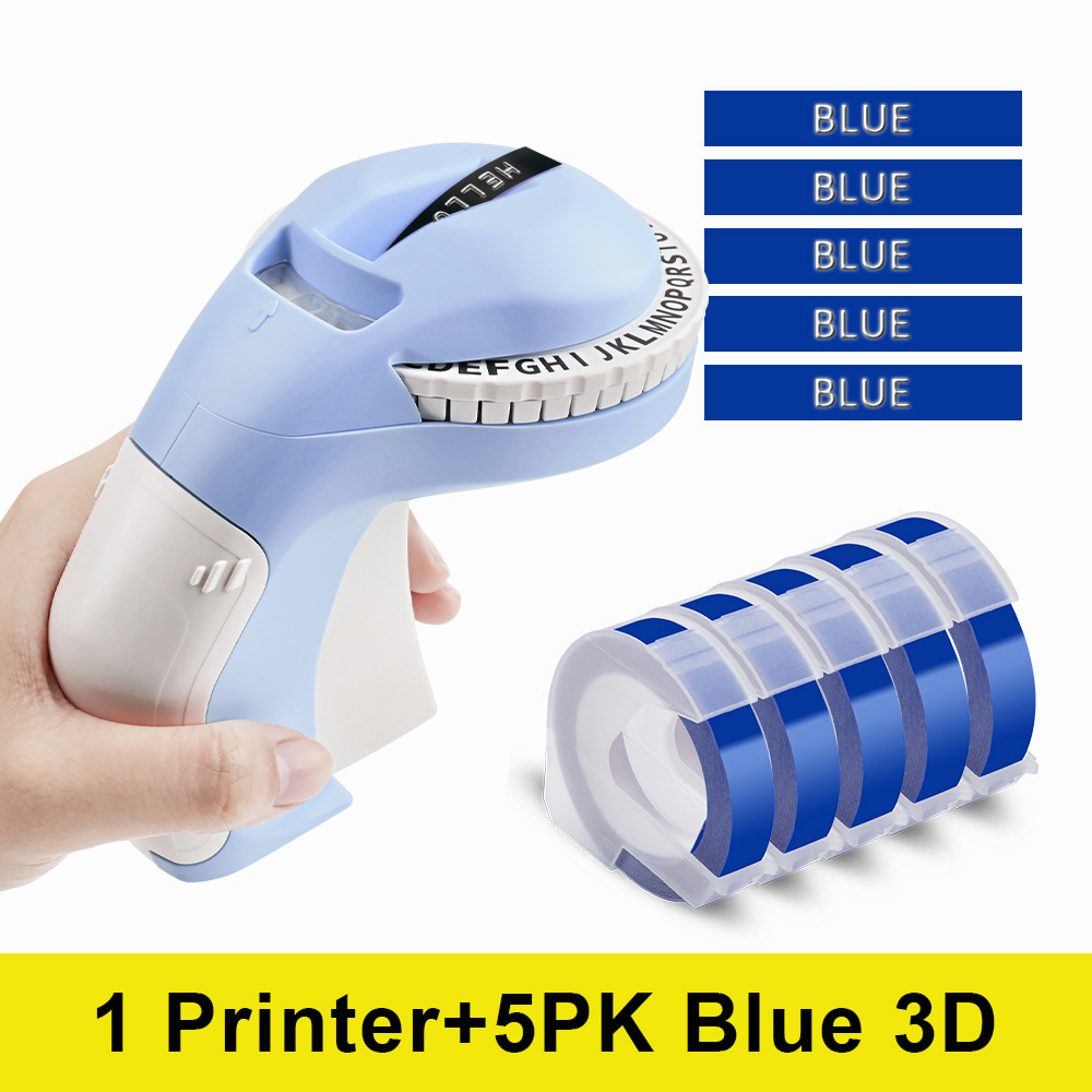 B90 Handheld Embossing Label Maker Purple with Embossing Label Tape 9mm x 3m Wheel Tape Writer Function as DYMO 12965 Omega Home Xpress Label Machine