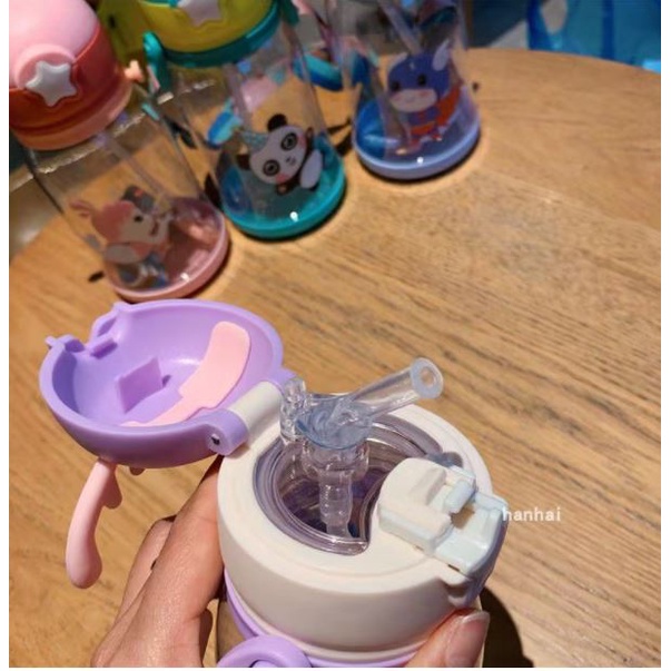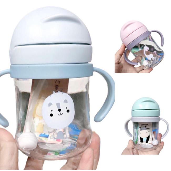 BABA 600ml Kids Straw Cup Carry Handle Water Bottle Sippy Cup Water Tumbler Sippy Cup for