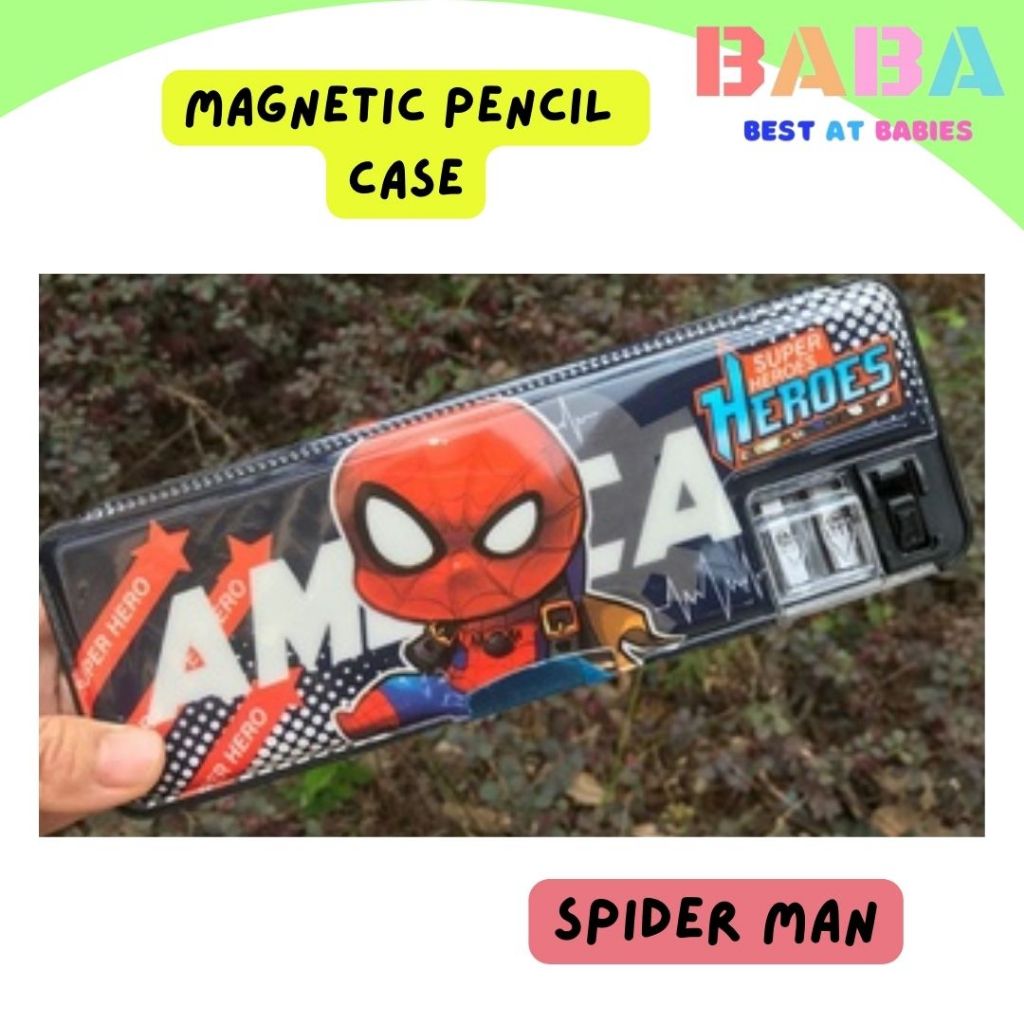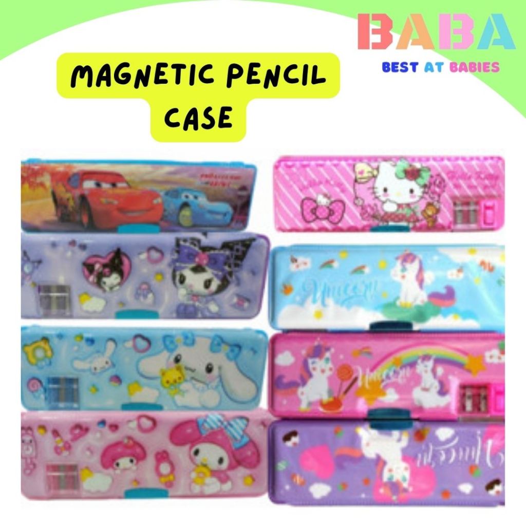 BABA Double Sided Pencil Case Box Magnetic Pencil Case for Kids Children Pencil case with sharpener
