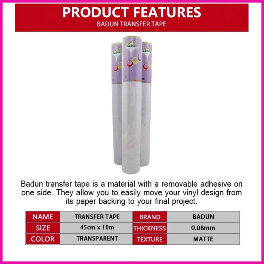 BADUN Transfer Tape for Car Sticker / Decal Sticker Application Tape 18inches * 10 meters (1 roll)
