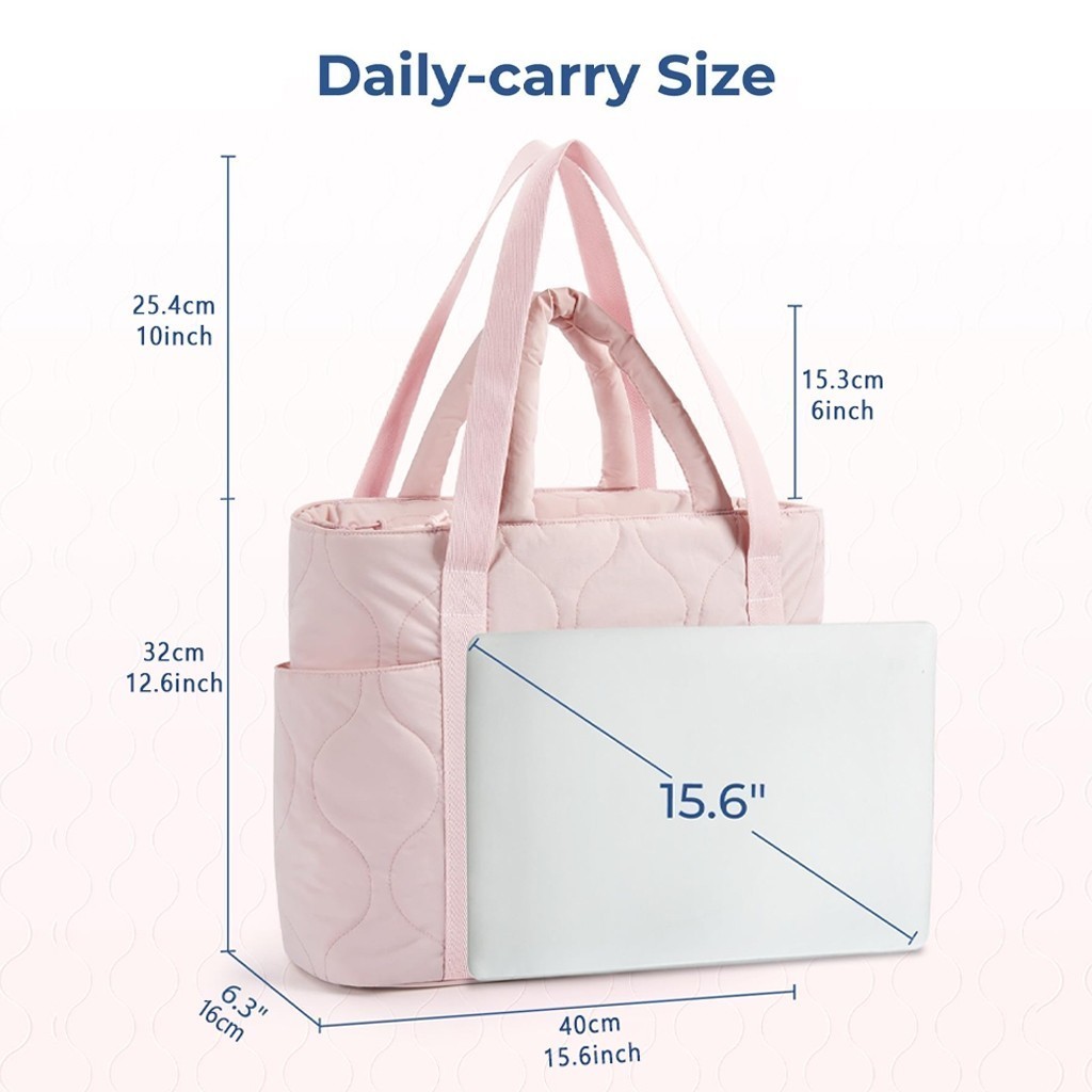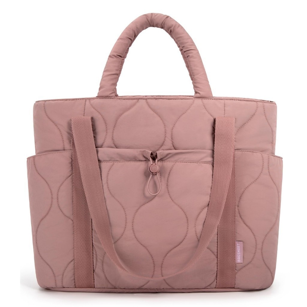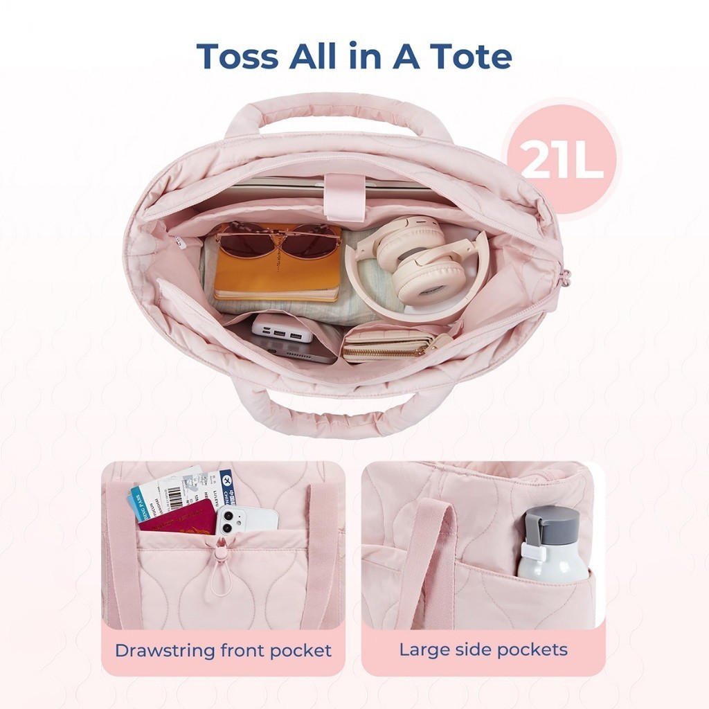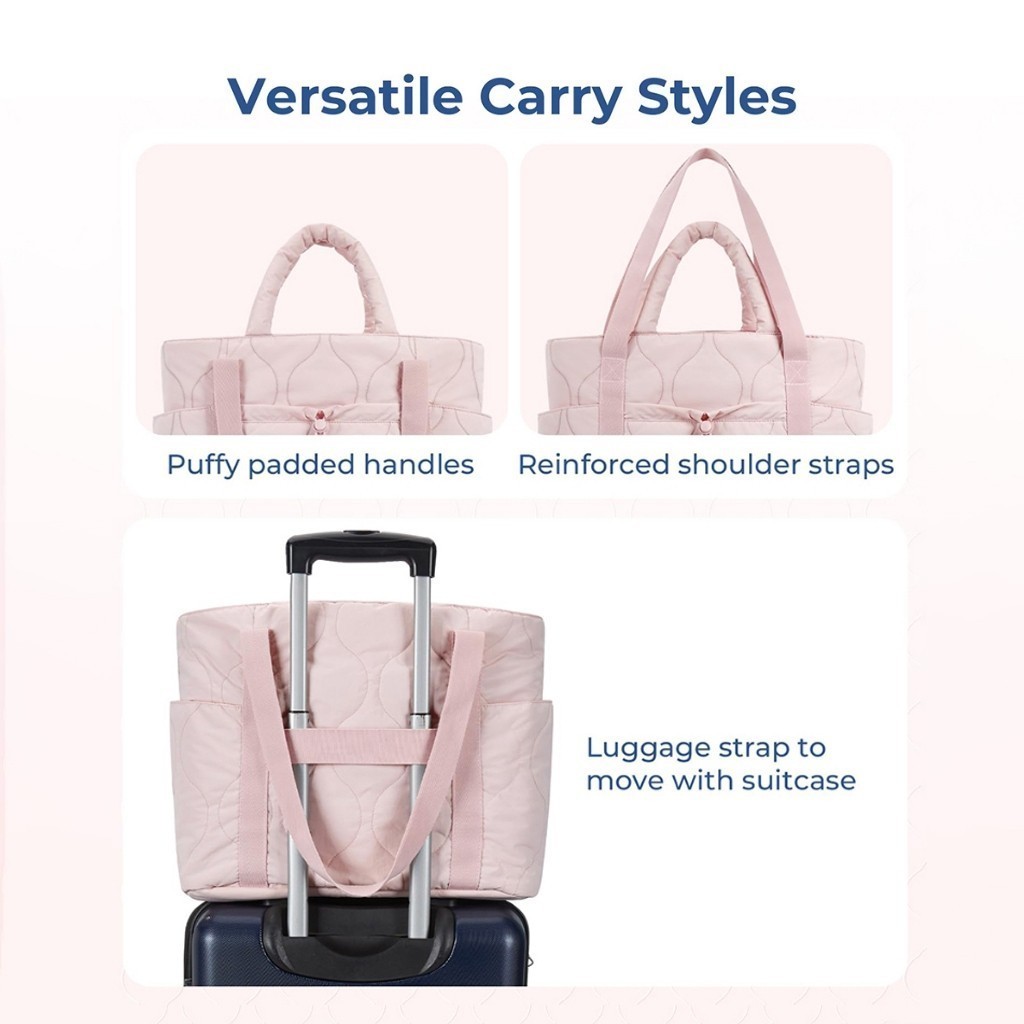 BAGSMART Puffer Tote Bag for Women, Quilted Travel Shoulder Bag, Large Lightweight Travel Bag with Zipper
