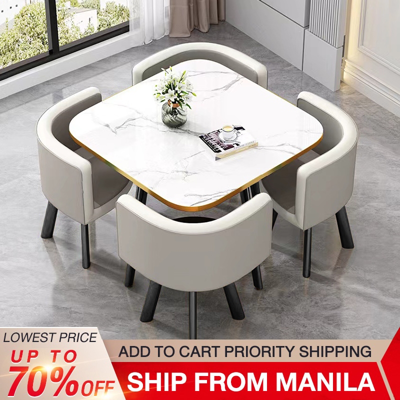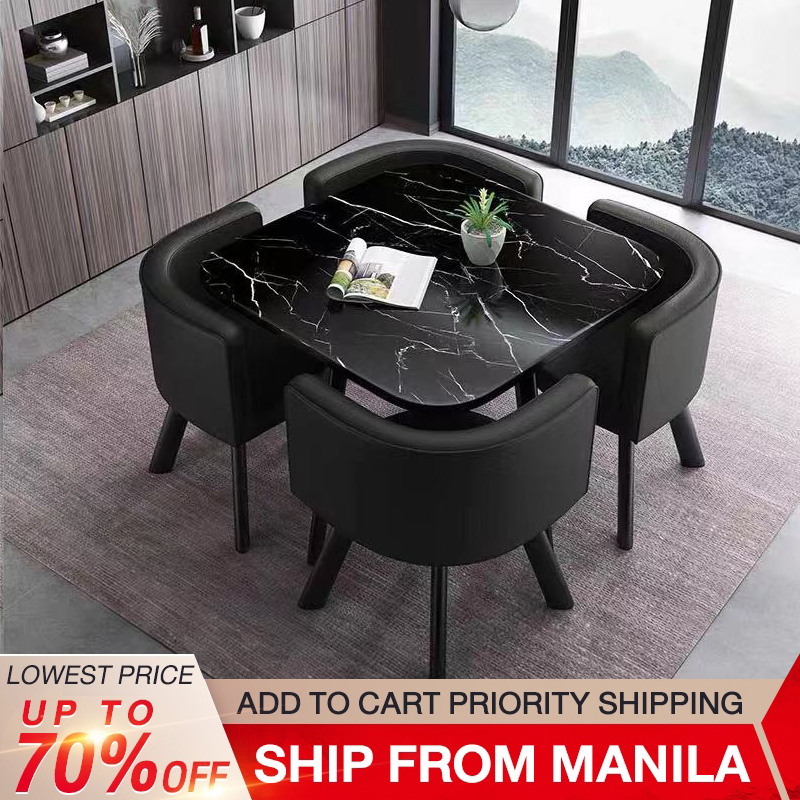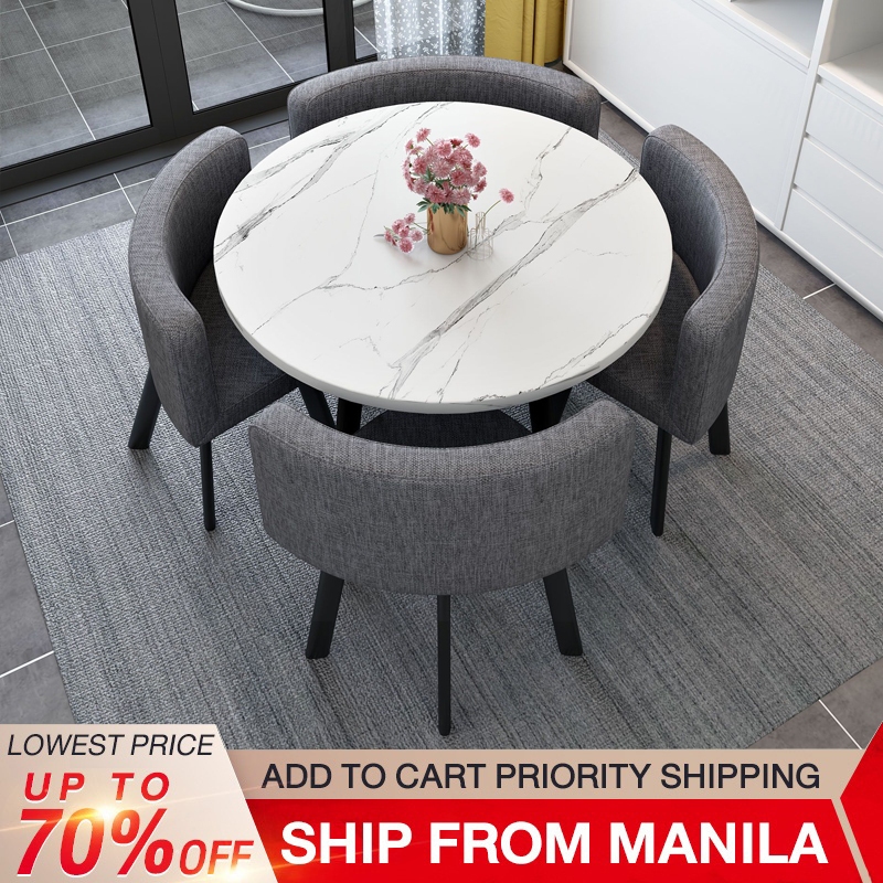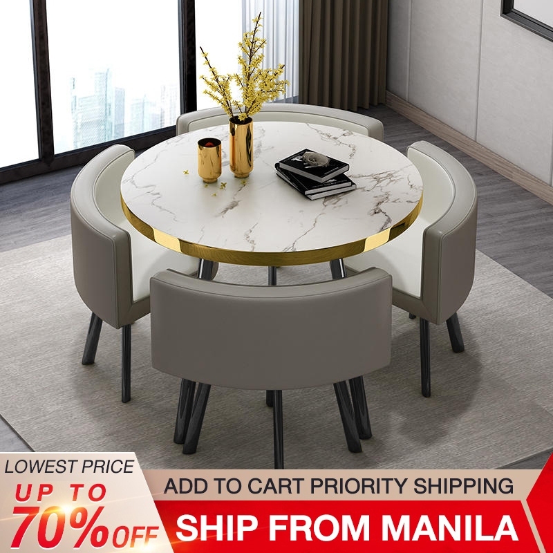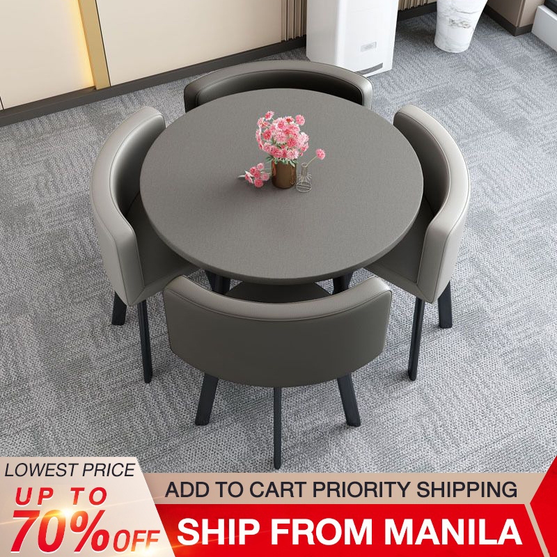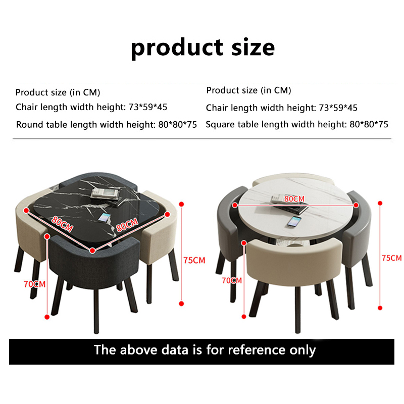 BAIERDI 80CM + four stools dining table set small round table reception table family dining table