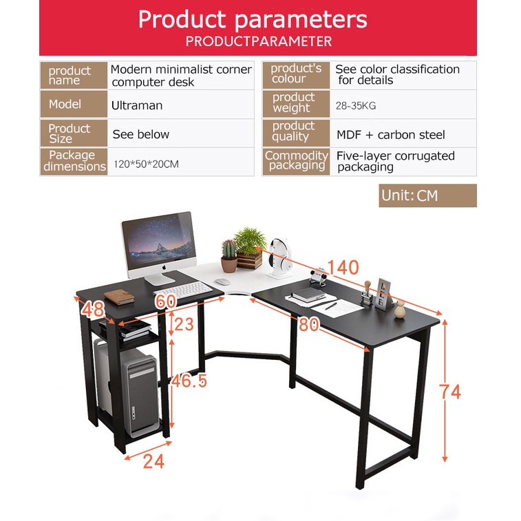 BAIERDI L-shape table computer table modern simple corner table home desk desk simple double writing desk writing desk desk desk for desktop corner table furniture L-shape table