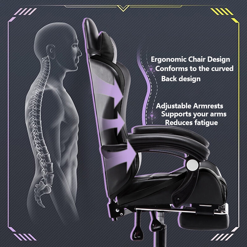 BAIERDI Leather Gaming Chair Massage Lumbar Pillow Steel Feet Height Adjustable Gaming Chair
