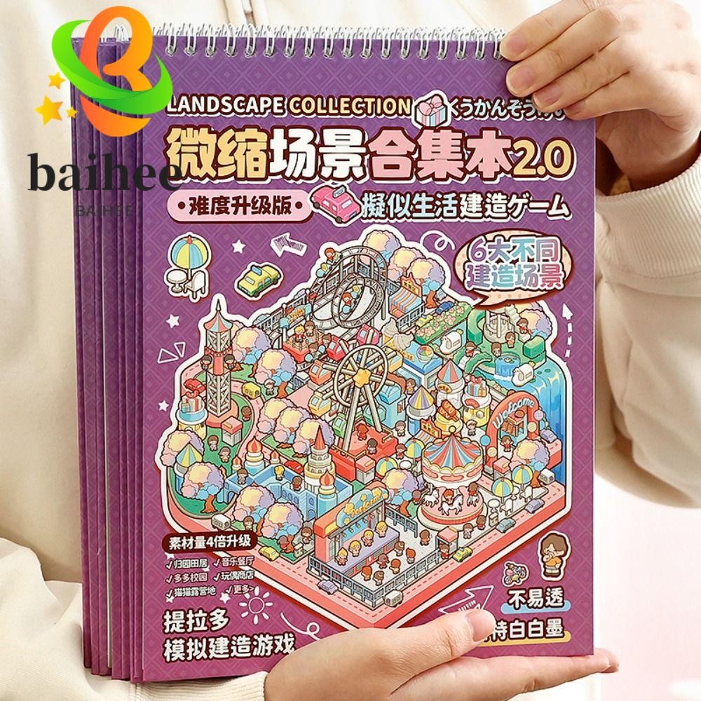 BAIHEE Miniature Scene Collection, PET Cartoon Landscape Sticker Book, Visual Stacking DIY Pocket Cabin Scene Stickers Kids