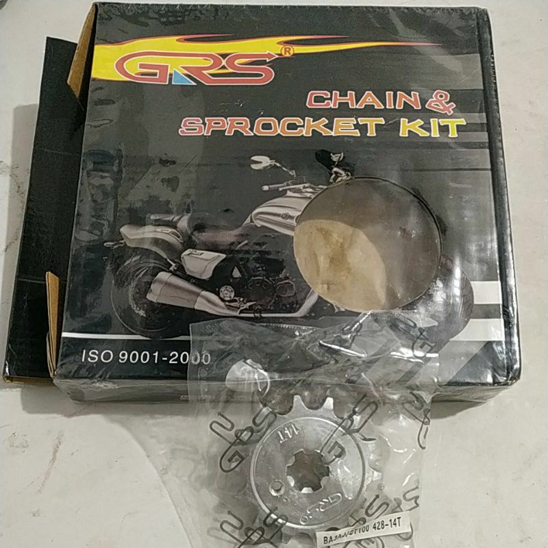 BAJAJ CT100 SPROCKET CHAIN SET 42T/14T 4HOLE no.428x120L "GRS"BRAND THAILAND MADE