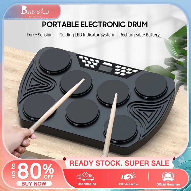 BANSID Tabletop Electronic Drum Set with Built-in 2 Speakers Portable 7-Pad Electronic Drum Kit