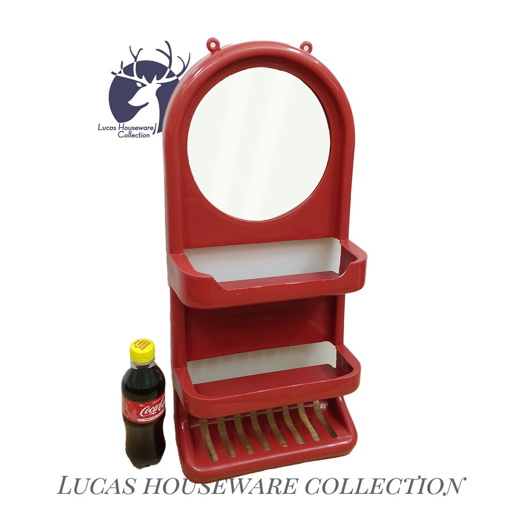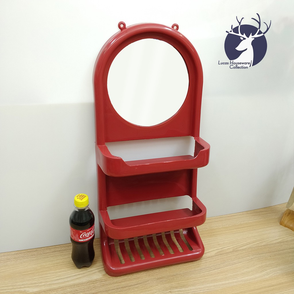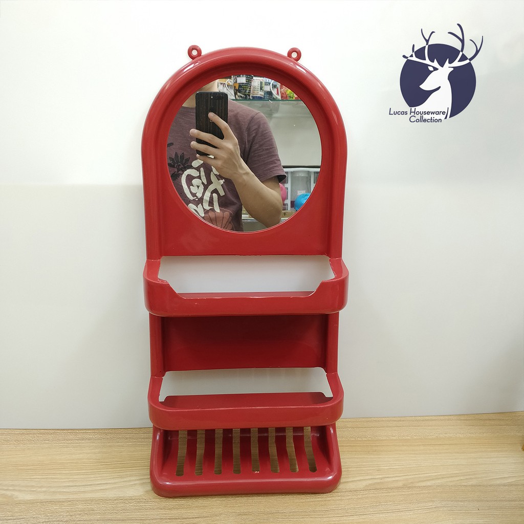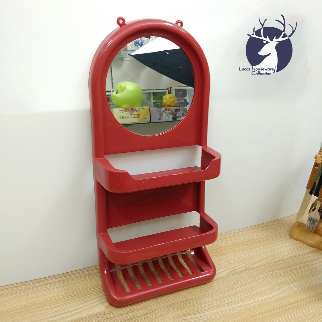 BATHROOM SHELVES WITH MIRROR / PLASTIC HANGING MIRROR SANITARY RACK / SALAMIN / SUPER SPACE SAVER
