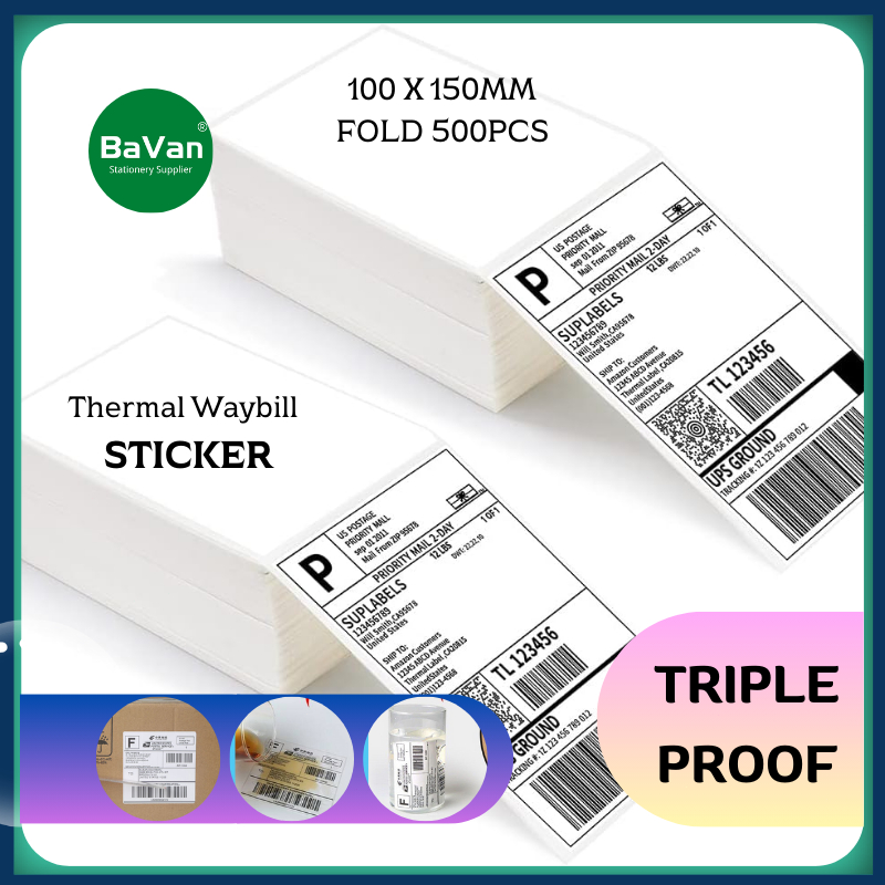BAVAN Waybill Sticker FOLD A6 Size TRIPLE PROOF 100x150mm Thermal Shipping Label Barcode Sticker