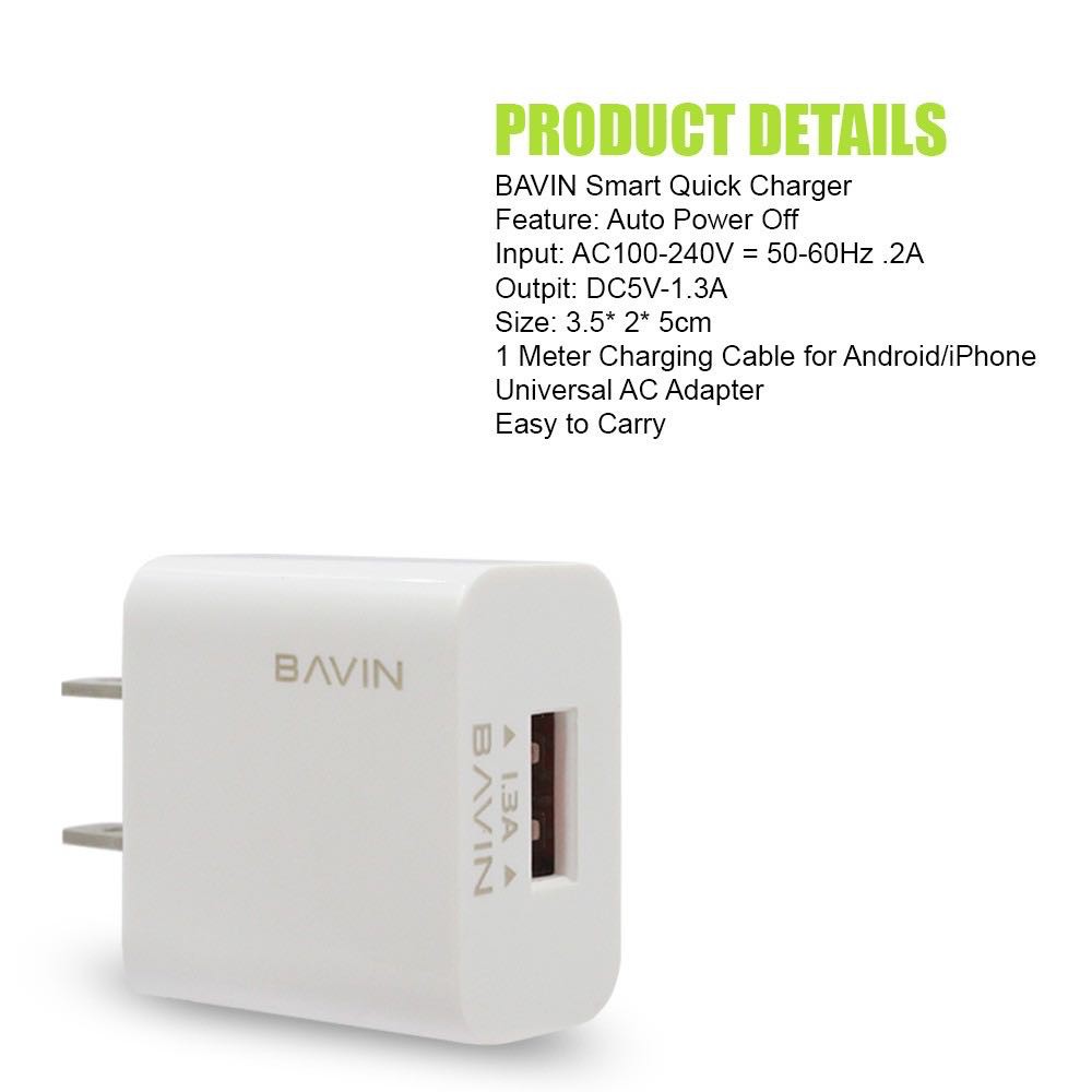 BAVIN 1.3A Ultimate Universal USB Quick Charger w/ 1m charging cable For android phone type-c