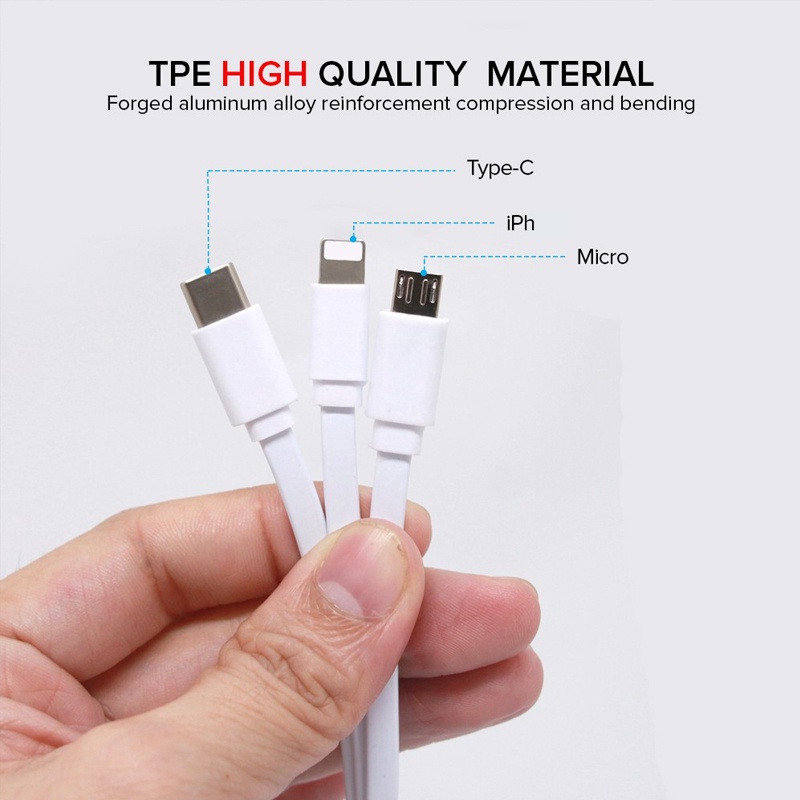 BAVIN 30cm USB 3 in 1 Quick Charging Cable Flexible Flat Cable Wire for iPh /Micro /Type-C
