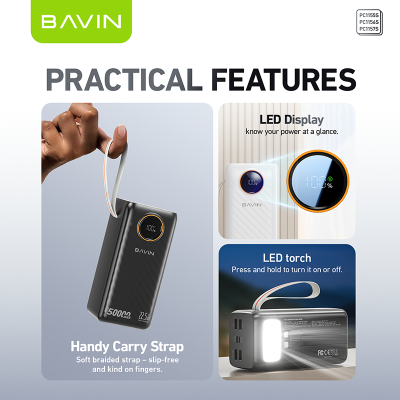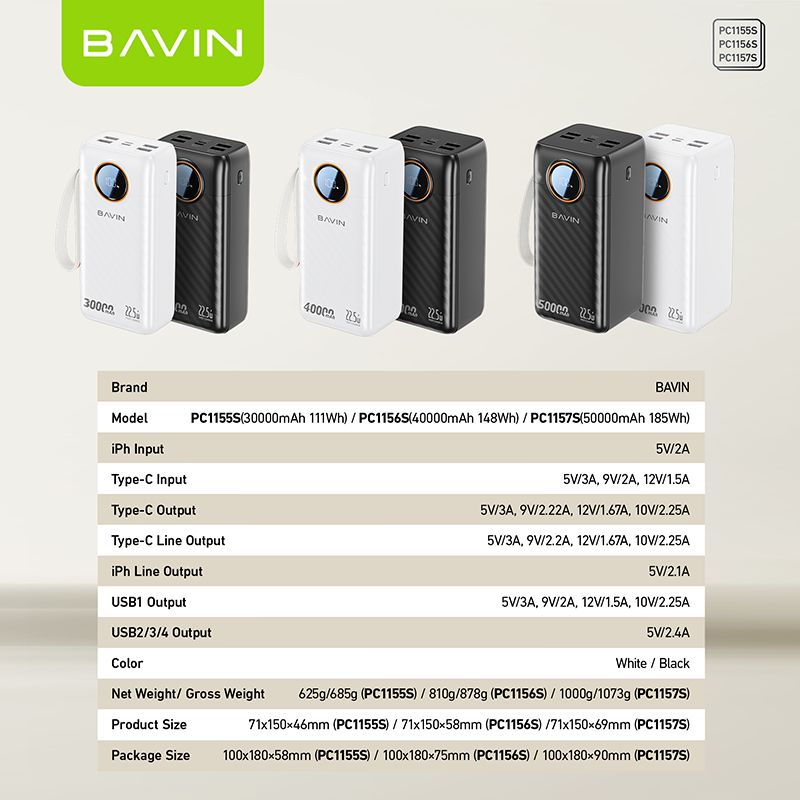 BAVIN 50000mAh Powerbank 2.1A Output w/4 USB Output Type-C for In/Output Digital Power Indicator
