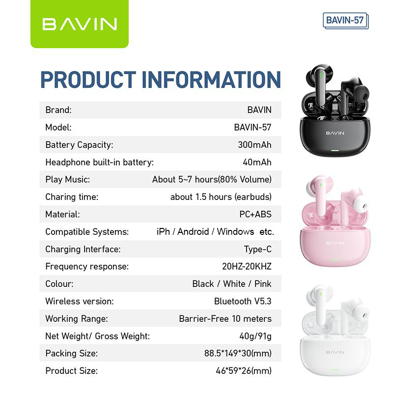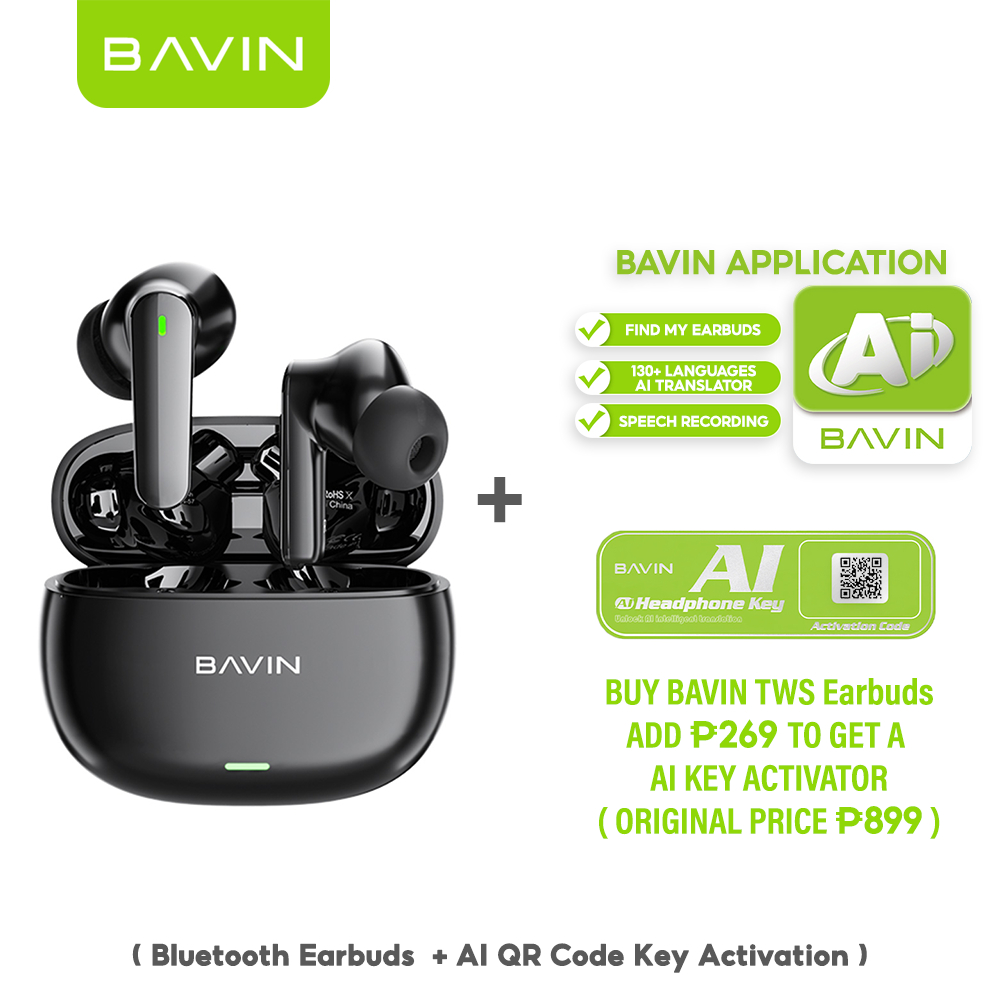 BAVIN BA57 TWS Wireless Bluetooth Earbuds HiFi Stereo Audio Sound w/Touch Control | AI Smart QR Code