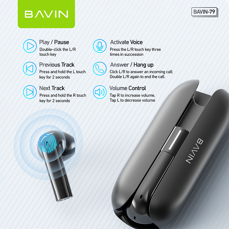 BAVIN BA79 TWS Bluetooth Earphones High Stereo Sound Wireless Earbuds w/ Hi-Res Audio
