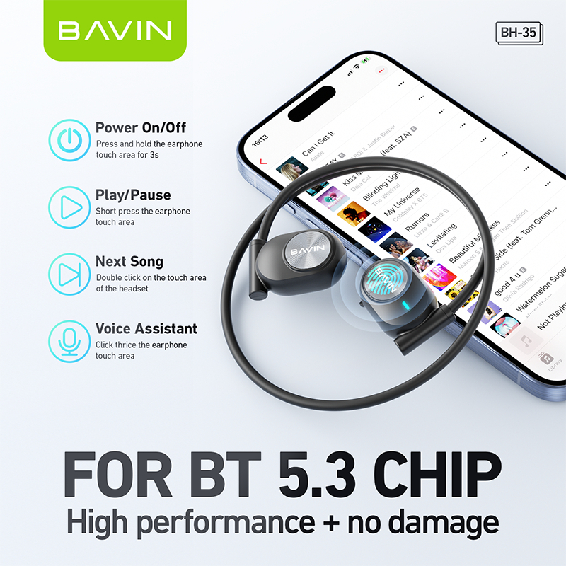 BAVIN BH35 HiFi Wireless Earbuds Waterproof Sport Bluetooth Earphone Headphone for Type-C