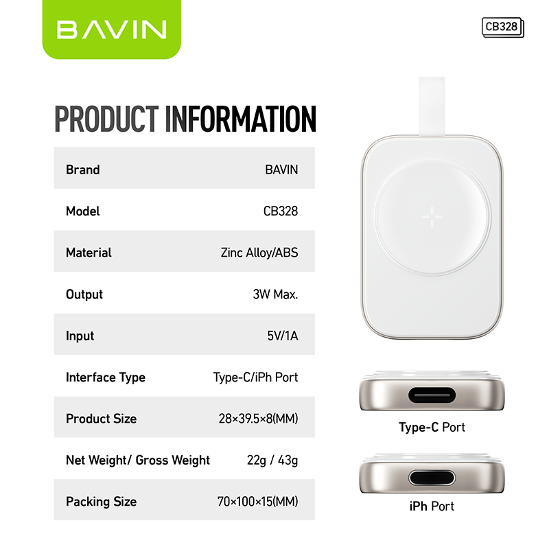 BAVIN CB328 Mini Portable Magnetic Wireless Charger for Smart Watch Widely Supports iPh Watch Series