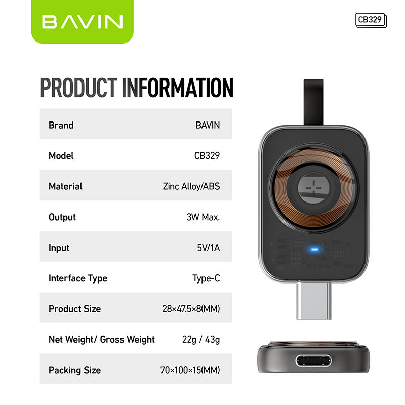BAVIN CB329 Mini Magnetic Wireless Direct Charger Portable & Widely Compatible for iPh Series Watch