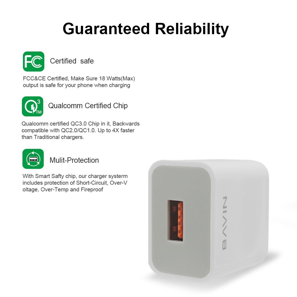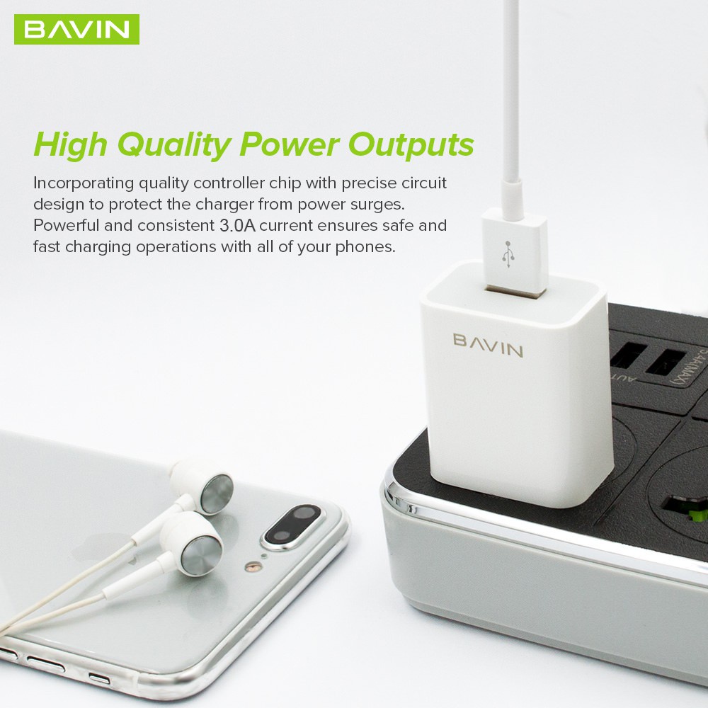 BAVIN Charger 3.0A Quick Charging 5A Adapter Set 1 Meter Charging Cable for Micro/iPh/Type-C