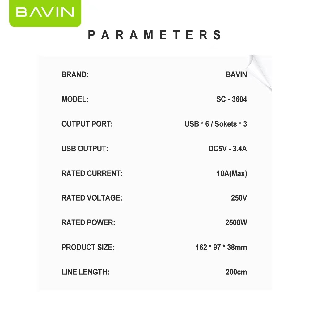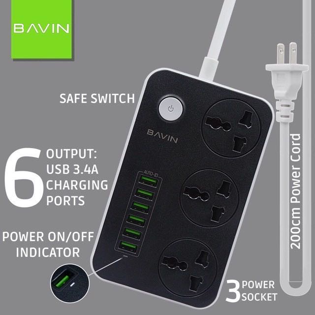 BAVIN Charger HUB w/ 3 Power Socket & 6 USB Port SC-3604
