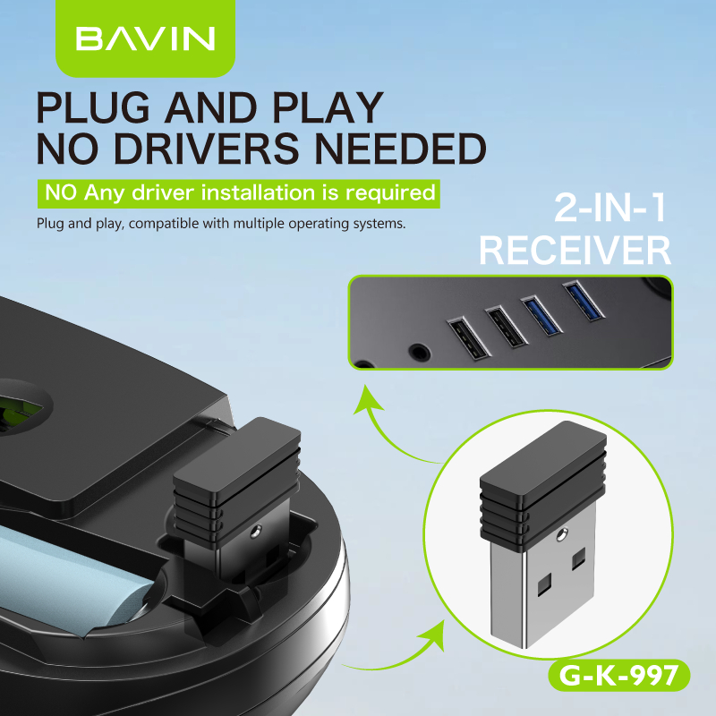 BAVIN GK997 2.4G Wireless Keyboard & Mouse for Computer Laptop Keyboard 106 Key/1200DPI Mouse