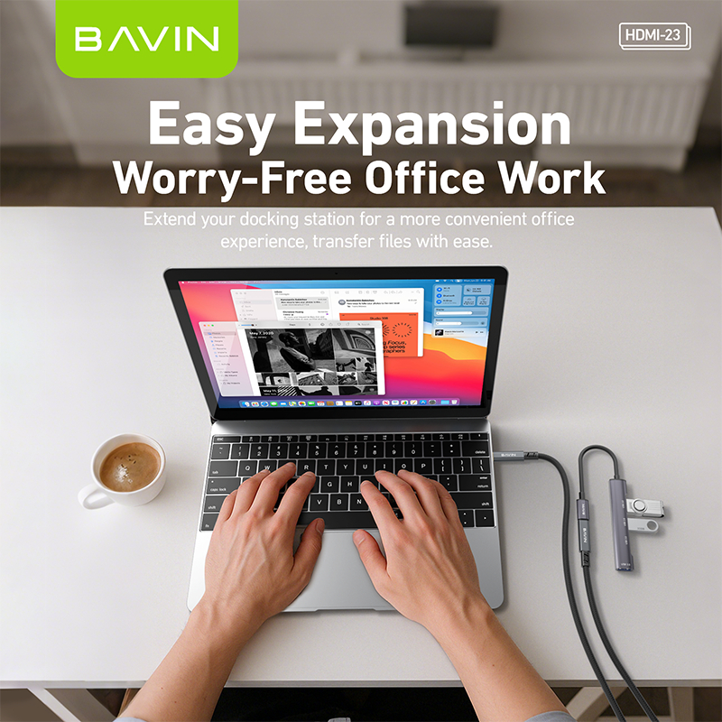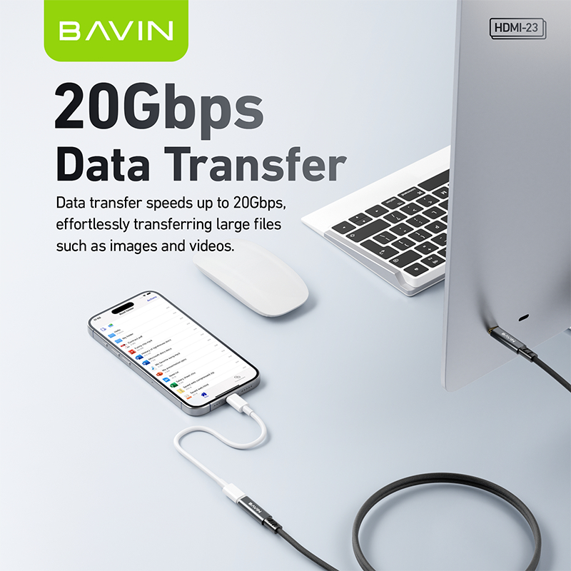 BAVIN HD23 4K 60Hz Ultra HD Resolution HDMI to Type-C Extension Cable w/ 100W Fast Charging & 20Gbps