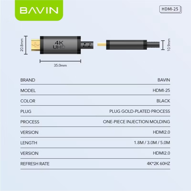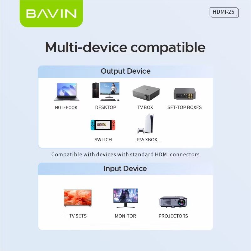 BAVIN HD25 HighSpeed HDMI Cable 4K UltraHD 3D Gold Plated Port for XM Mi Box PS5 Splitter Switch