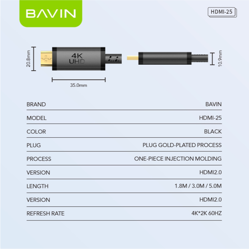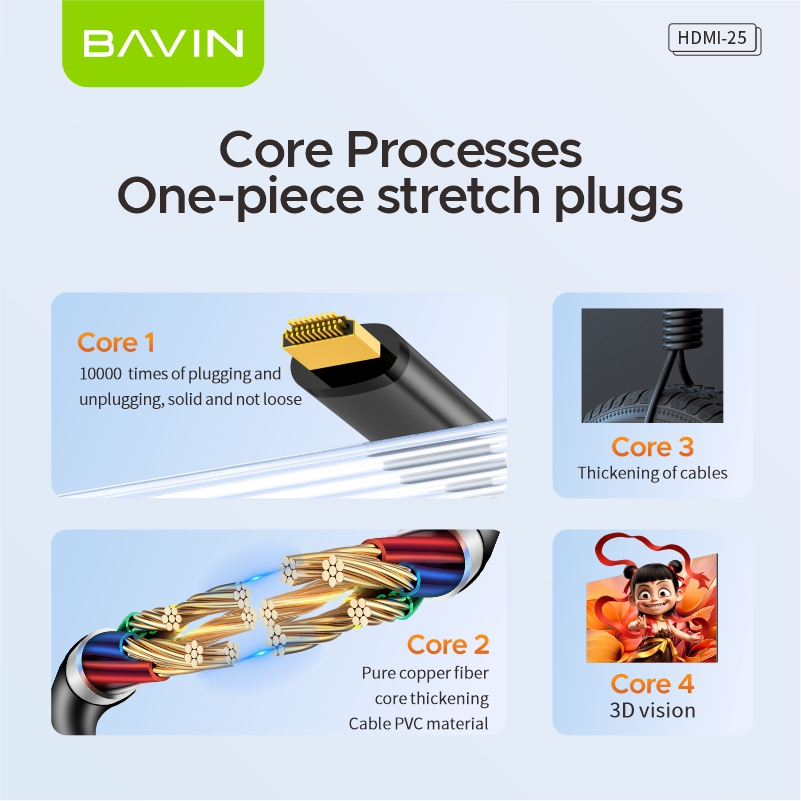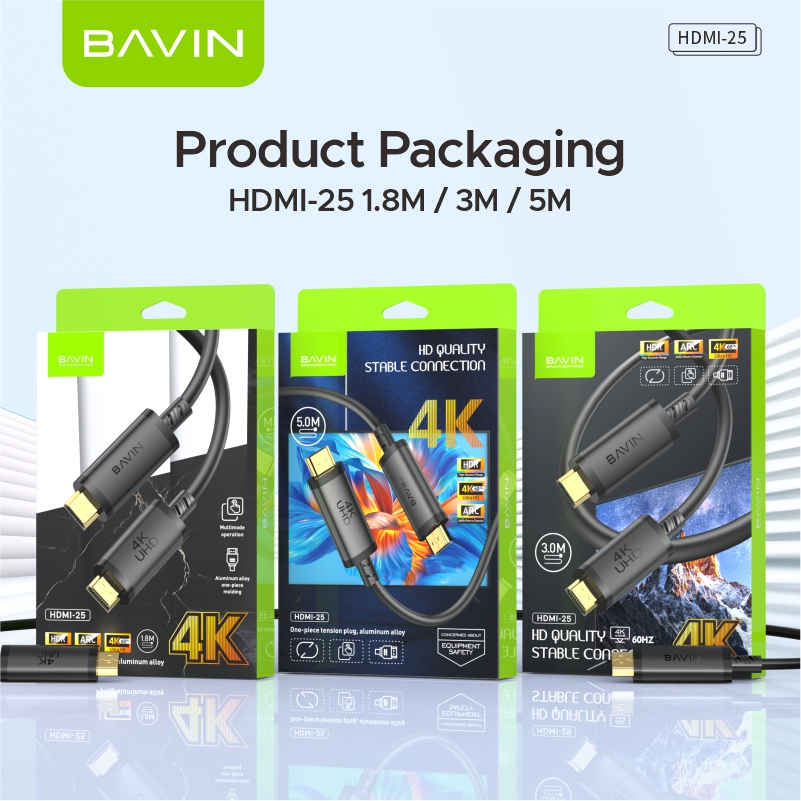 BAVIN HD25 HighSpeed HDMI Cable 4K UltraHD 3D Gold Plated Port for Xiaomi Mi Box PS5 Splitter Switch