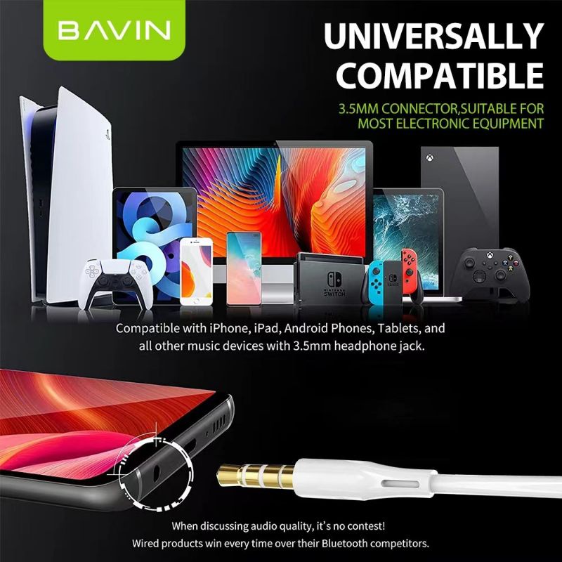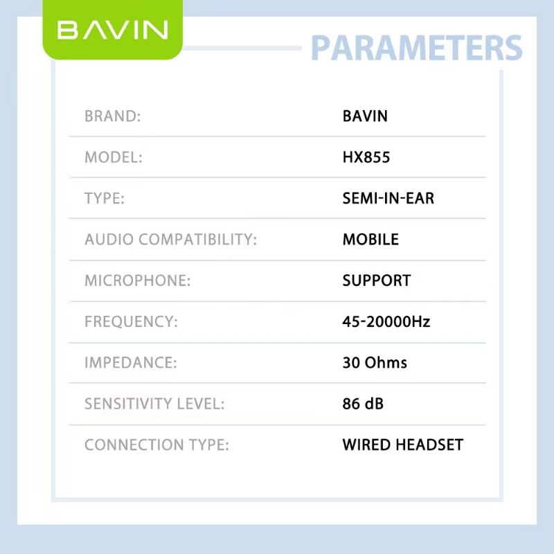 BAVIN HX855 3.5mm Jack Heavy Bass HiFi Sound Quality Wired Earphone Stereo Audio Sound
