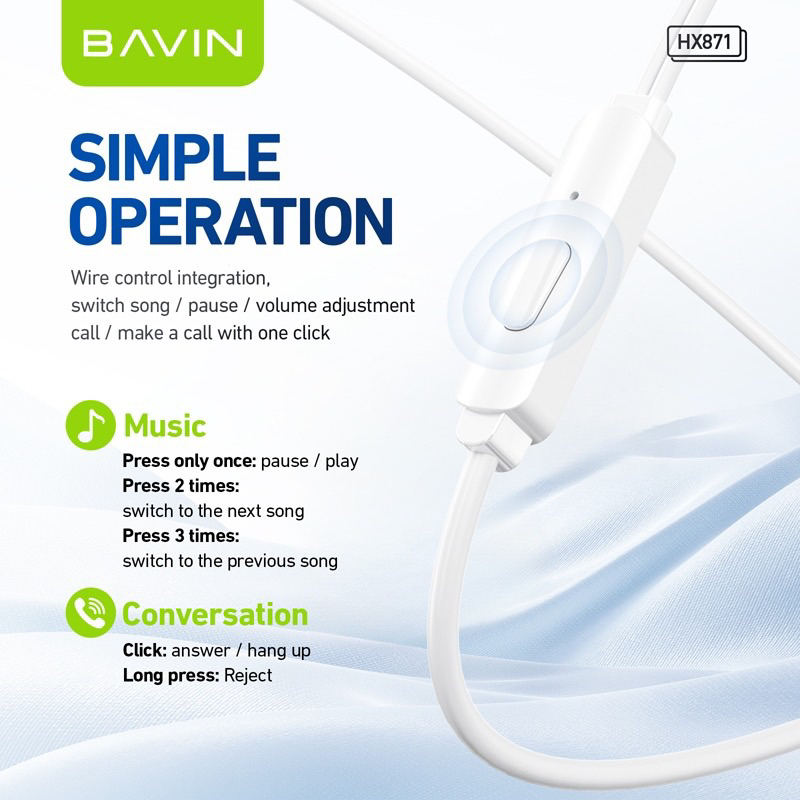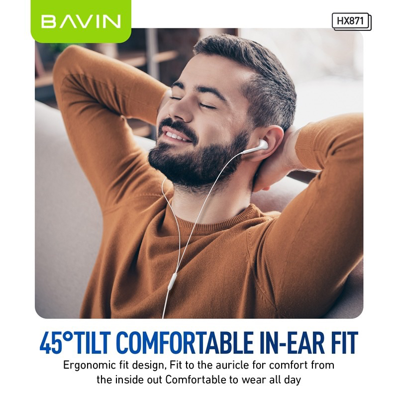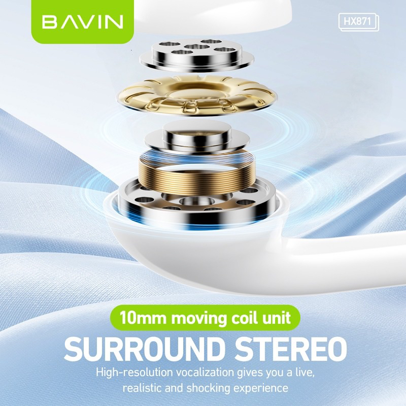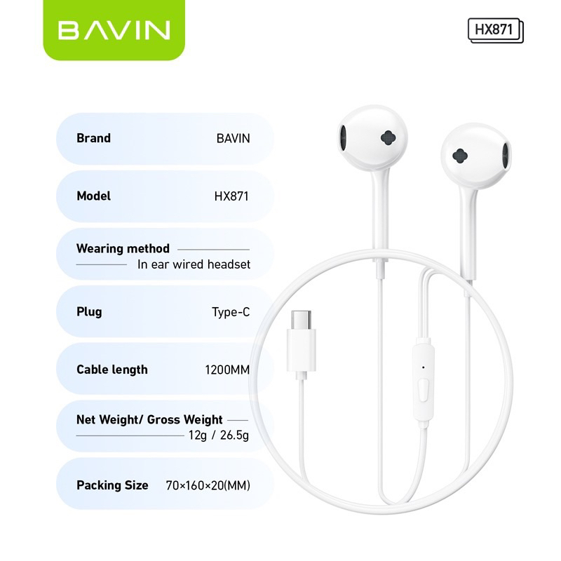 BAVIN HX871 HiFi Wired Type-C Earphone Stereo Audio Sounds Built-In Microphone Type-C Wired Earphone