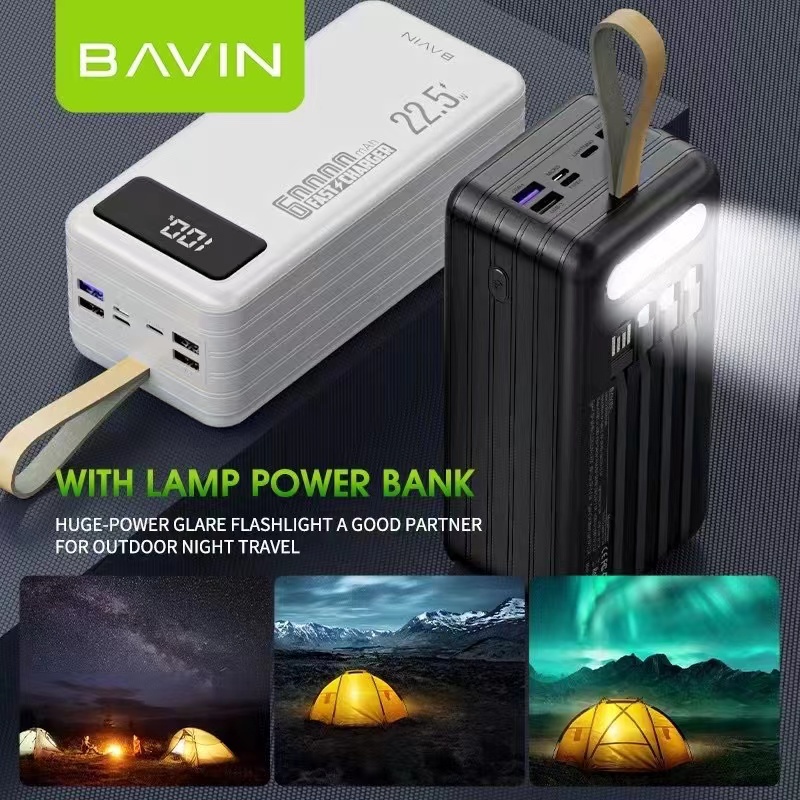 BAVIN PC053 60000mAh Powerbank Fast Charging 22.5W Output Type-C Micro Input Flashlight Power Bank