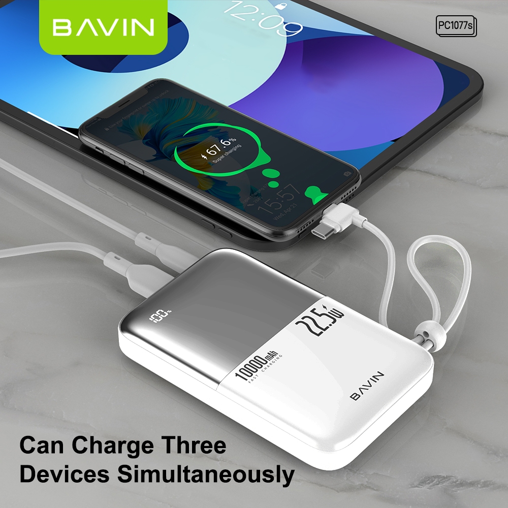 BAVIN PC1077 Mini Slim Fast Charging Powerbank 10000mAh 22.5W w/ Built-In LED Display & Cable Cord