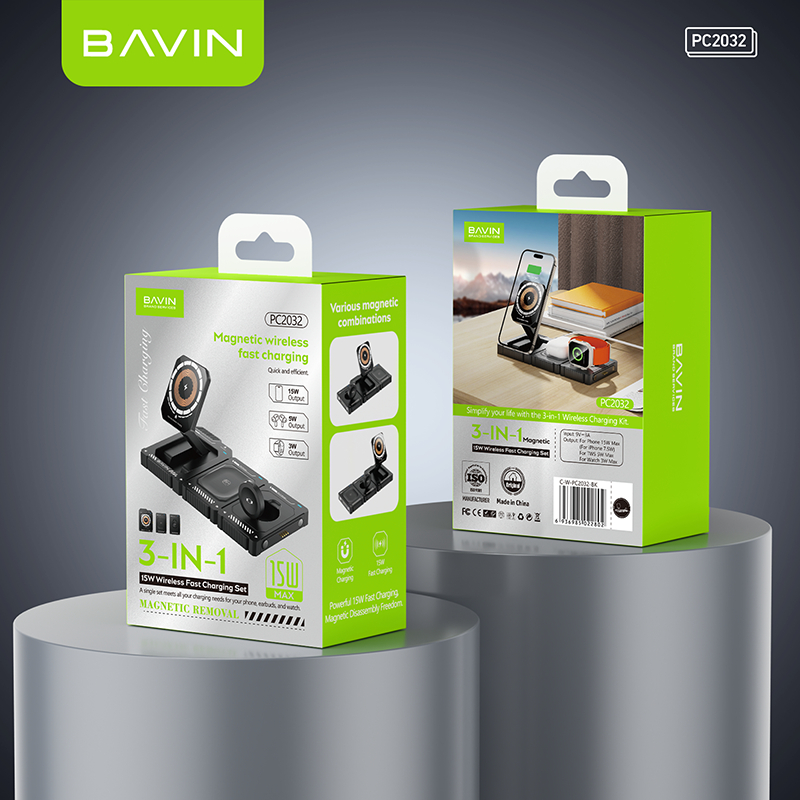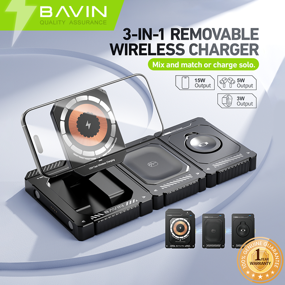 BAVIN PC2032 Removable 3in1 Wireless Magnetic Charger 15W Wireless Charging Station for iPh Devices