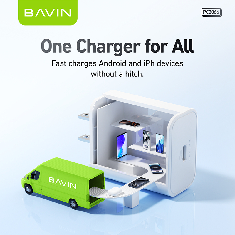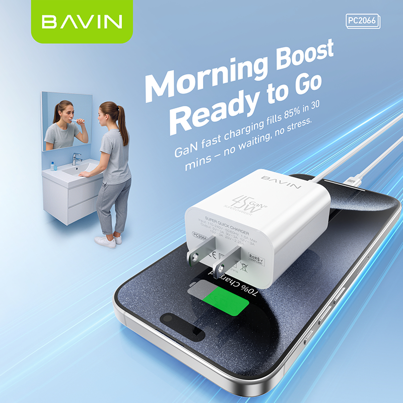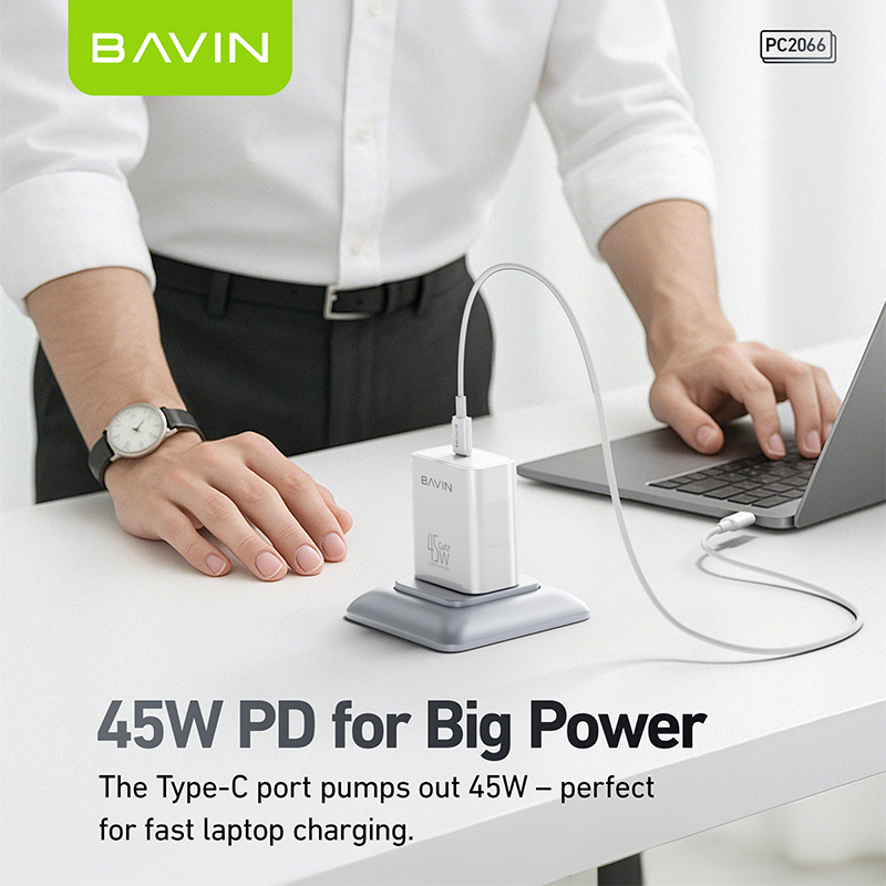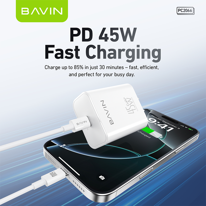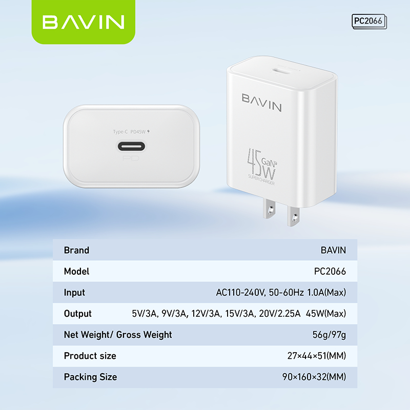 BAVIN PC2066 GaN 45W PD Fast Charging AC Adapter Compatible for Android & iPh Devices