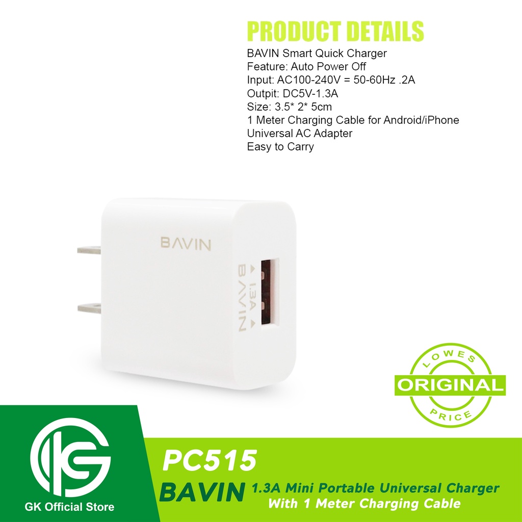 BAVIN PC515 1.3A Mini Portable Universal USB Charger For Micro Android / USB-I / TYPE-C