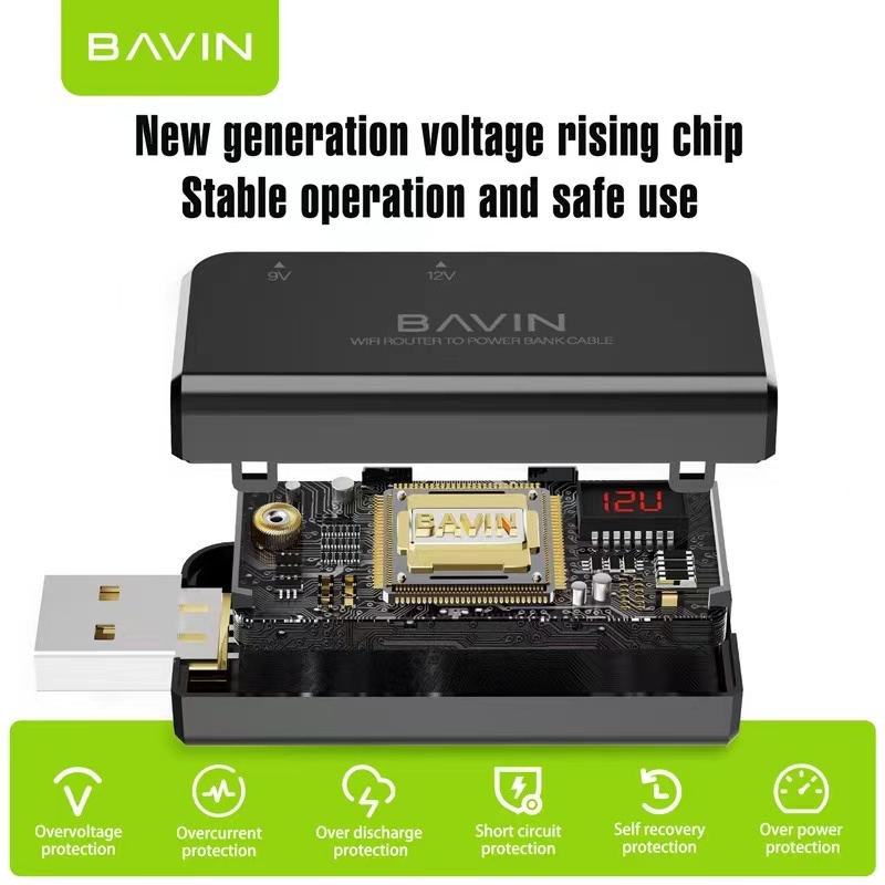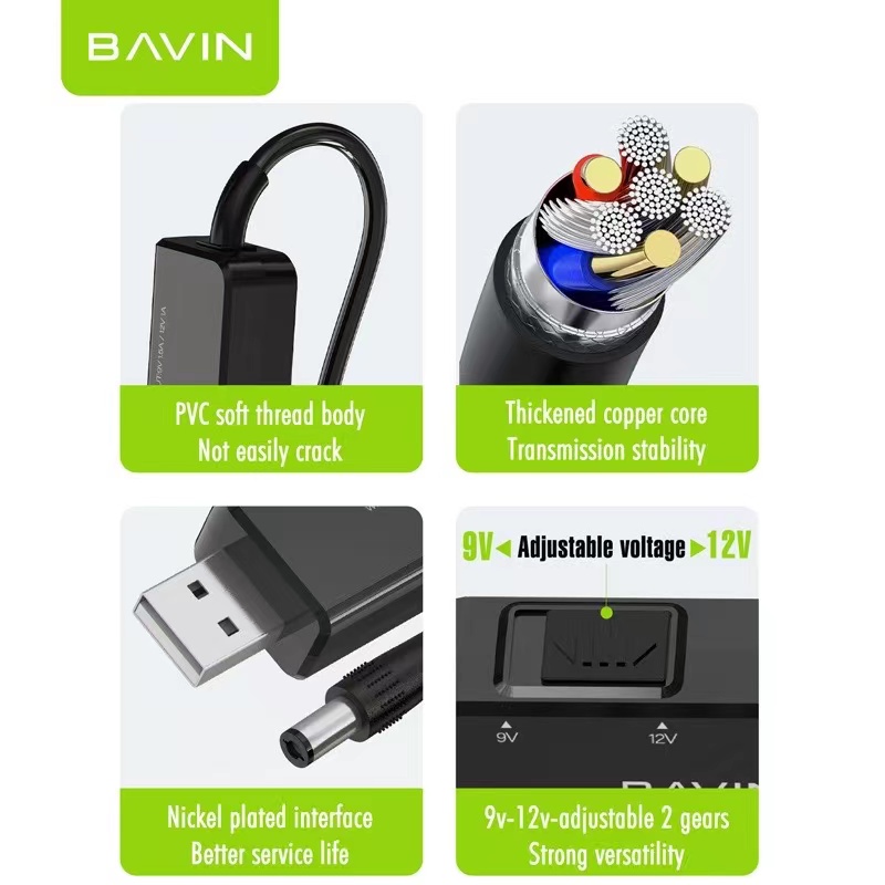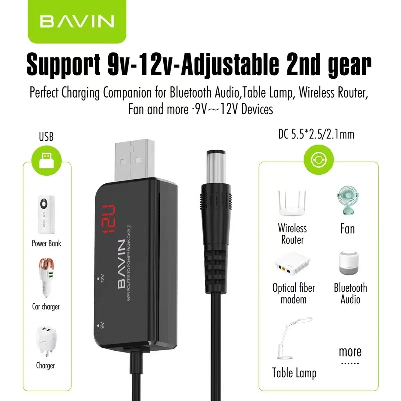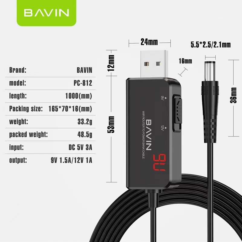 BAVIN PC812 Powerbank To Wifi Router Modem USB Booster Charging Cable 1 Meter DC 5V to 12V Power