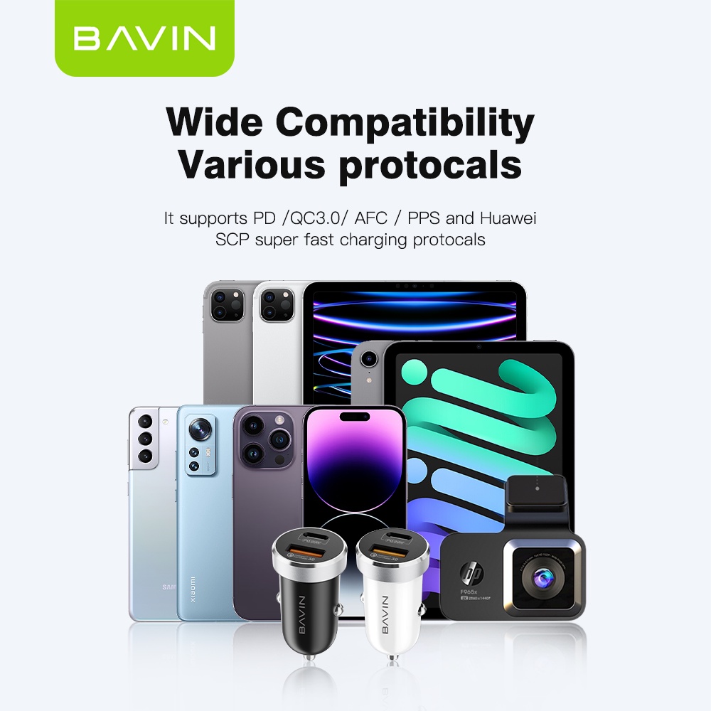 BAVIN PC863 PD Fast Charging Car Charger Dual Port Qualcomm 3.0 & PD 20W Suitable For iP 16 Series