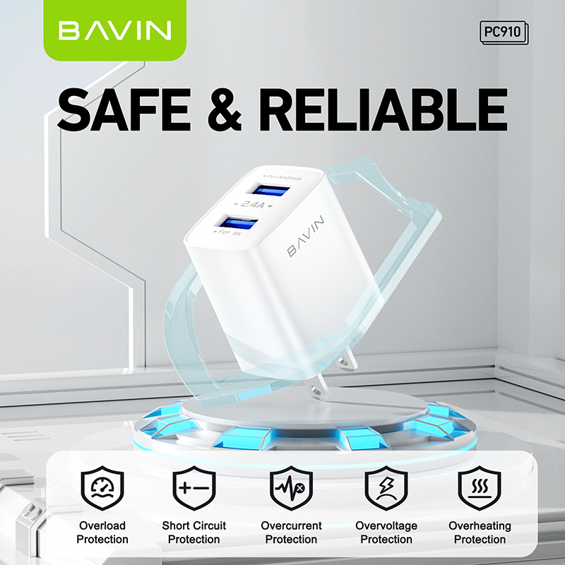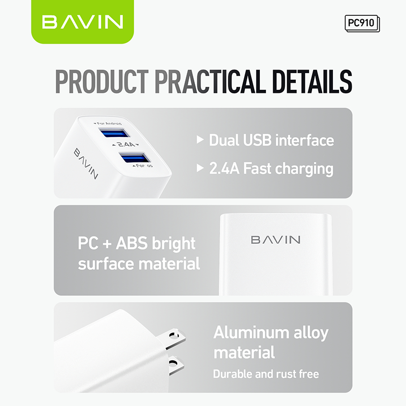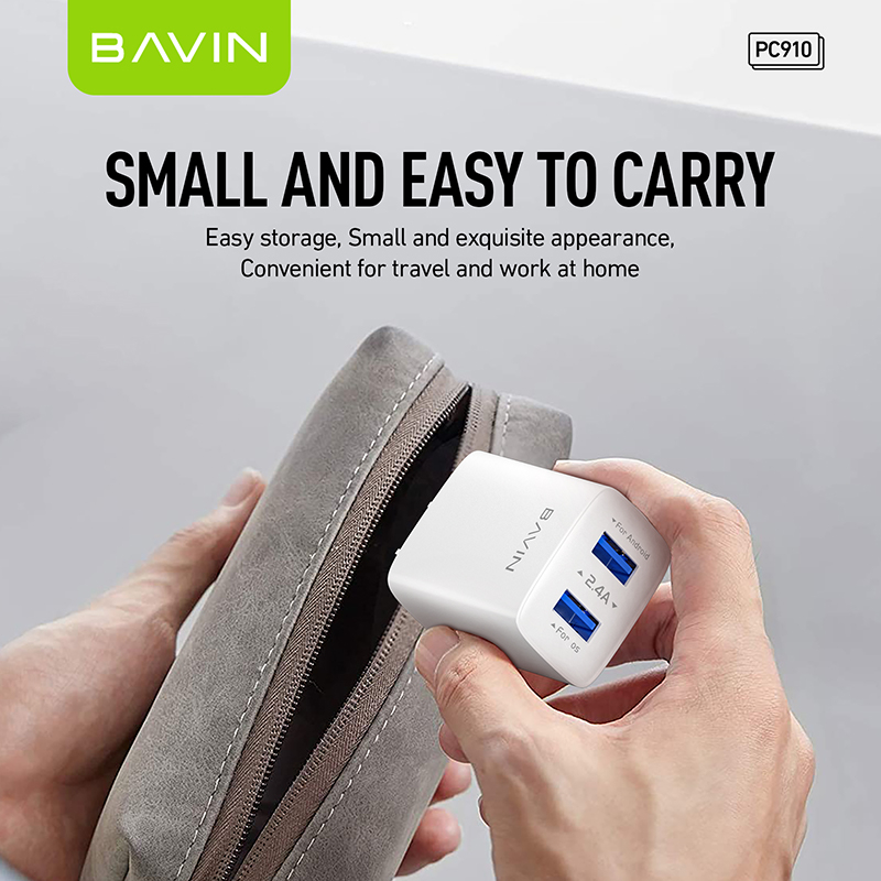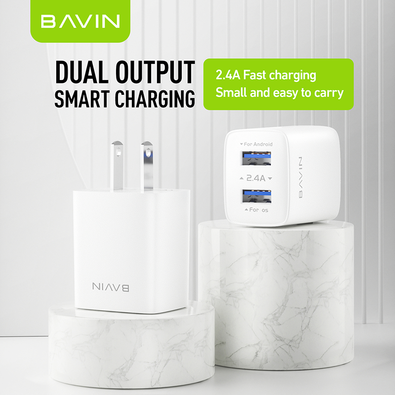 BAVIN PC910 / PC895 2.4A Quick Charging USB Port Wall Charger w/ 1 Meter Cable for Micro/Type-C/iPh