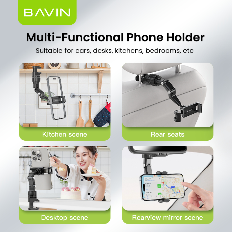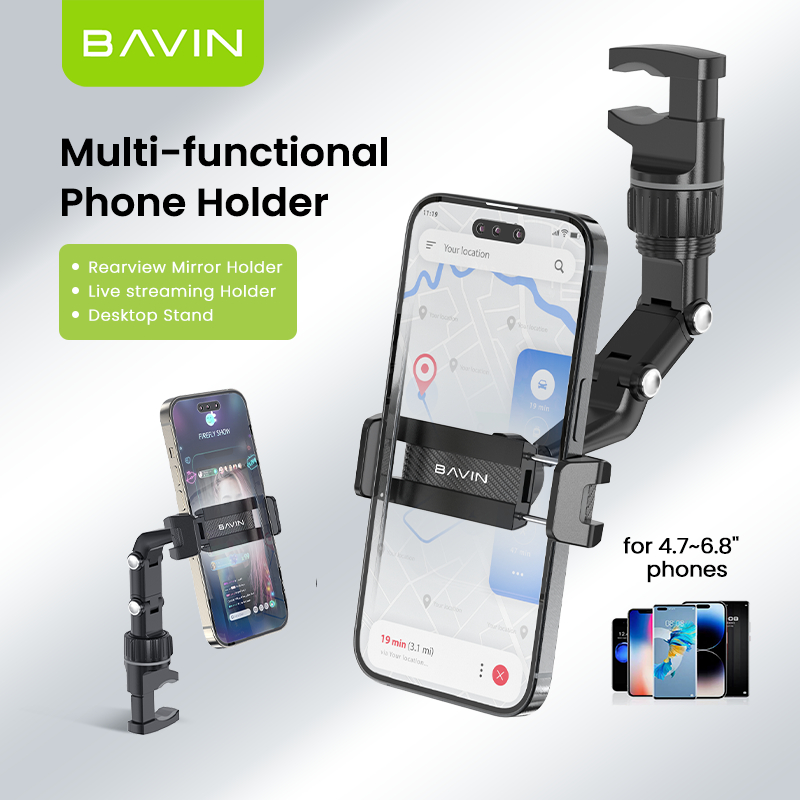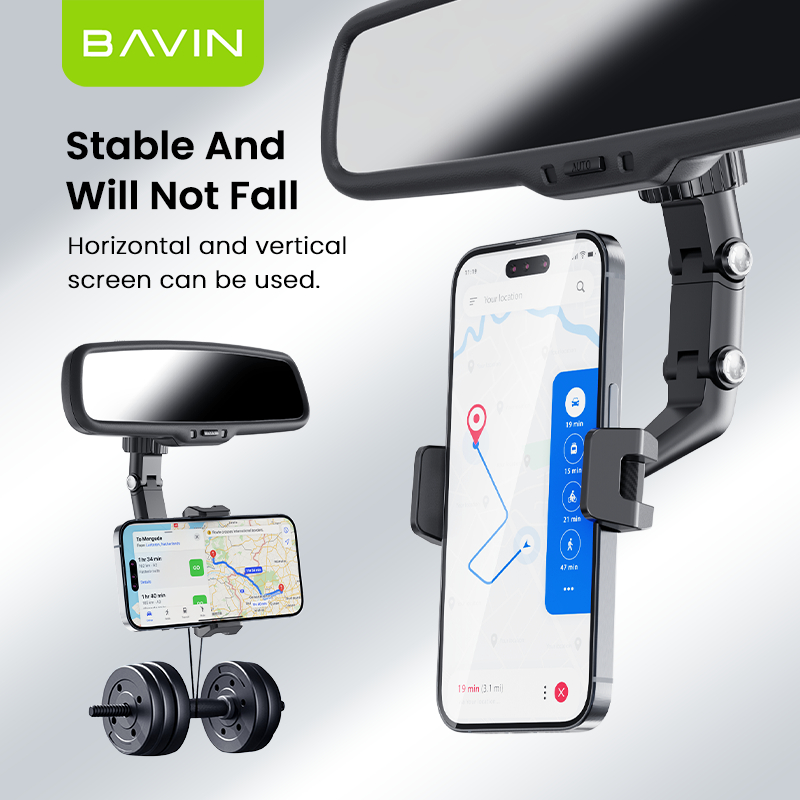 BAVIN PS55 Universal Car Rearview Mirror Phone Holder Mount Phone Holder 360 Degrees GPS Stand