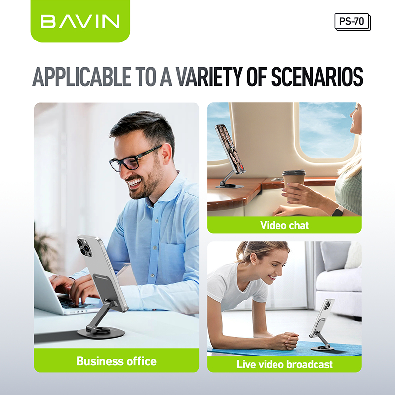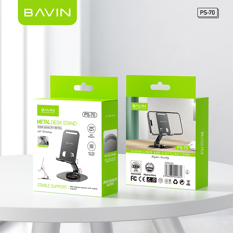 BAVIN PS70 Steel Phone Holder 360 Rotation Metal Phone Stand Bracket Holder for Cellphone & Tablet