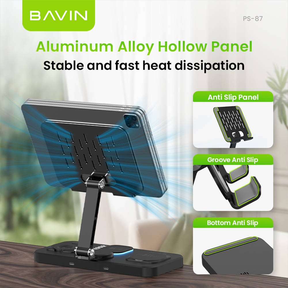 BAVIN PS87 6-in-1 Magnetic 15W Wireless Charger Stand w/ Clock for Mobile Devices & Smart Watch