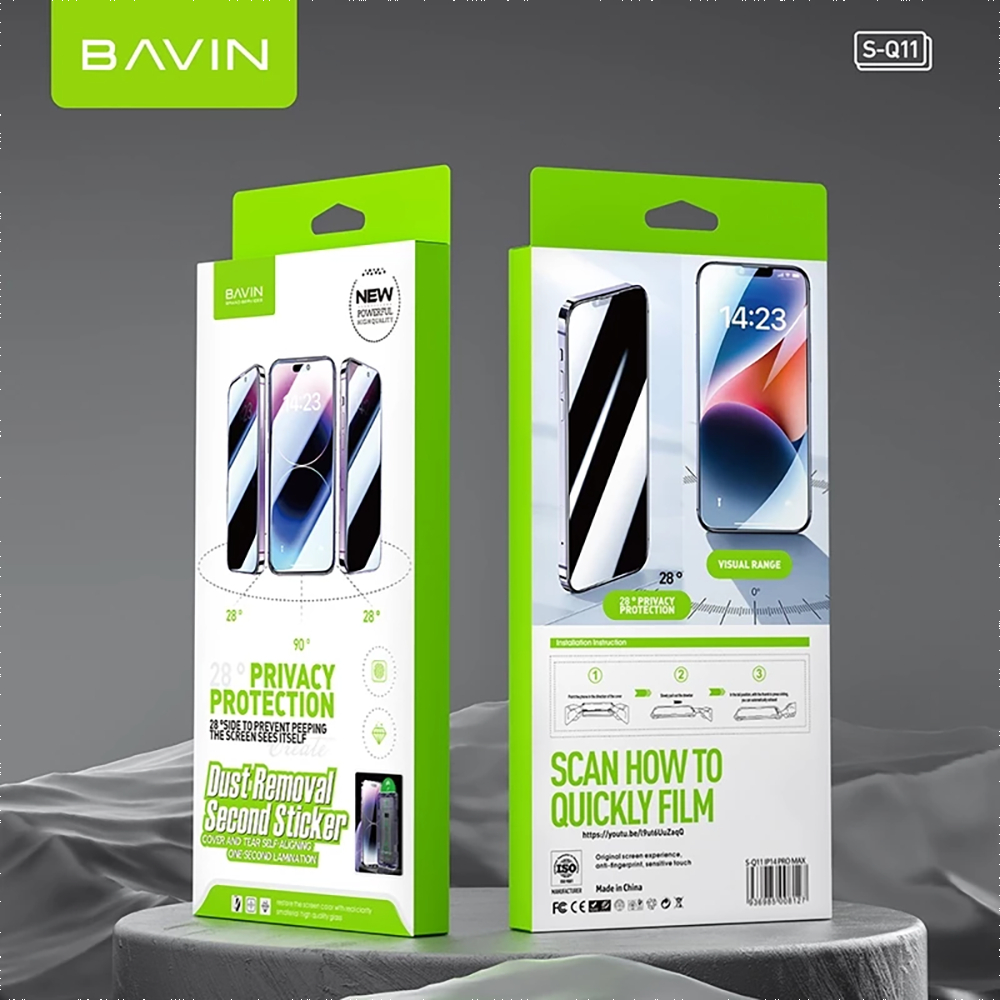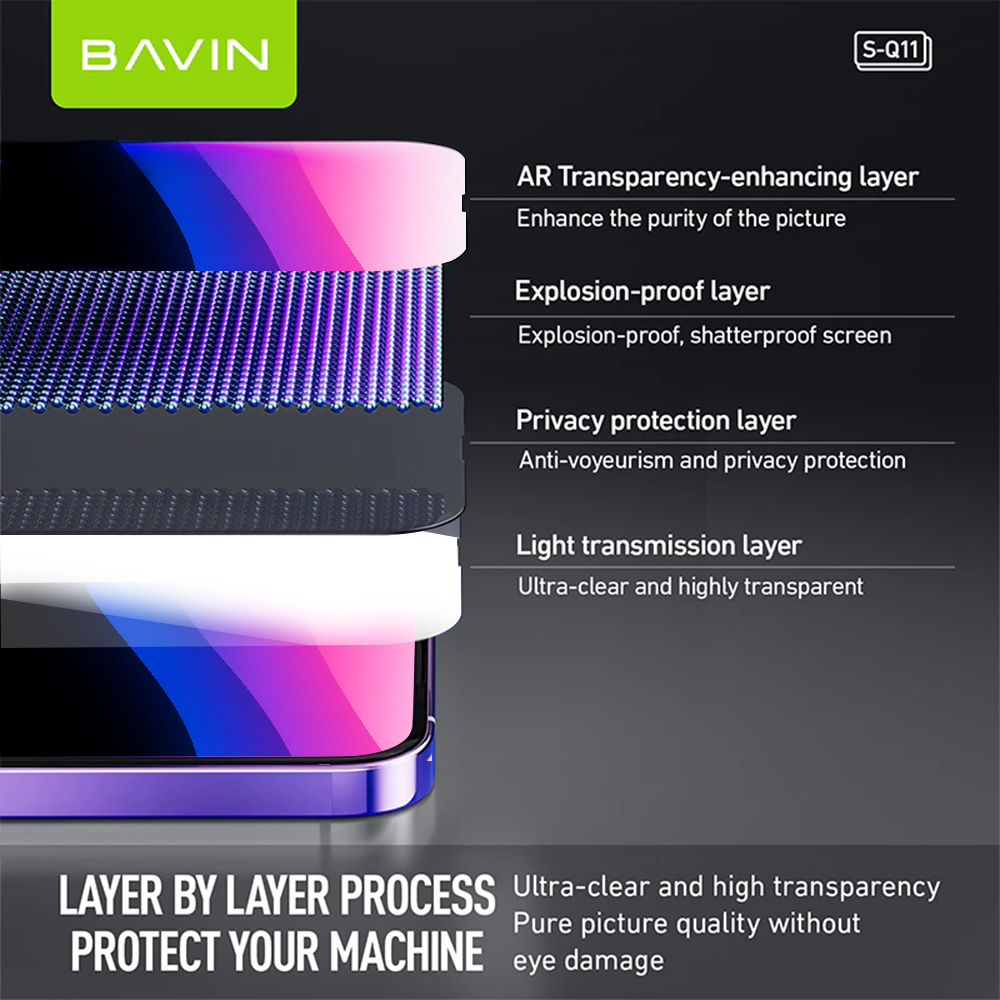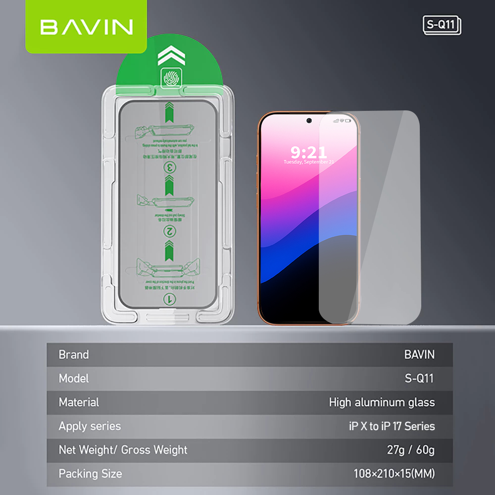 BAVIN Q11 One Click Screen Protector Privacy Tempered Glass for iP X/XS/11/12/13/14/15/16/17 Series
