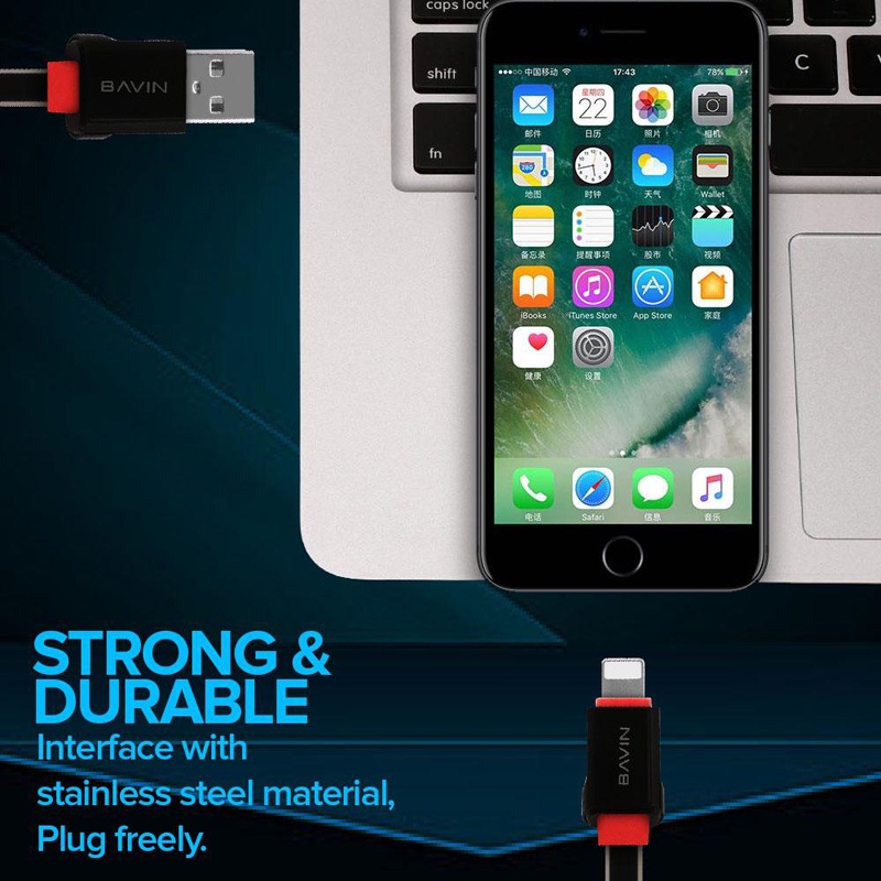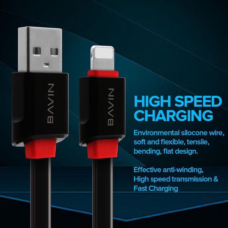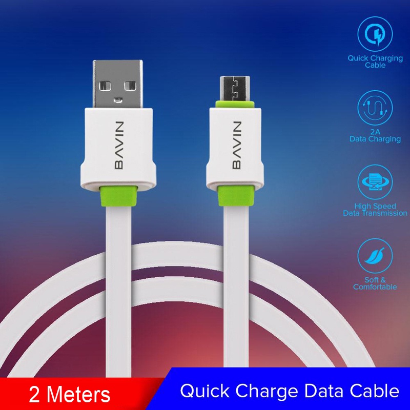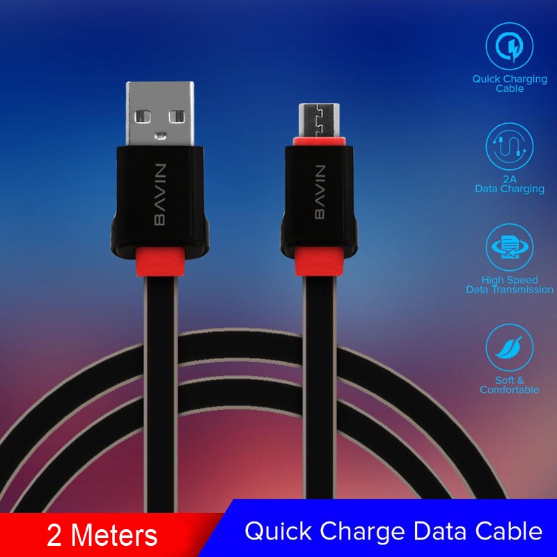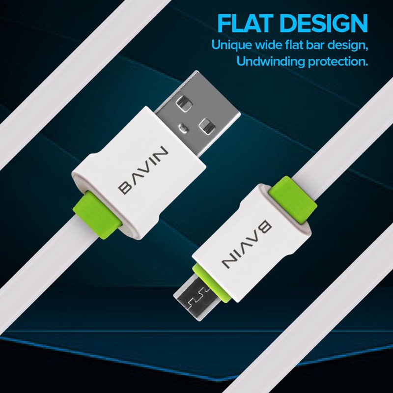 BAVIN USB Flat Design Charge and Data Transfer Cable for Android and IOS 2 Meter