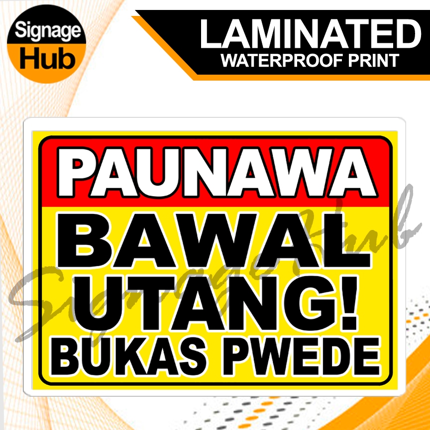 BAWAL UTANG Signage | Laminated Signage | A4 ( 8" X 11" inches ) | Waterproof Print