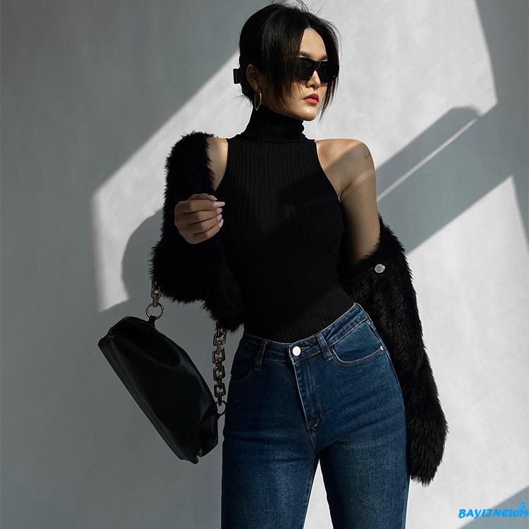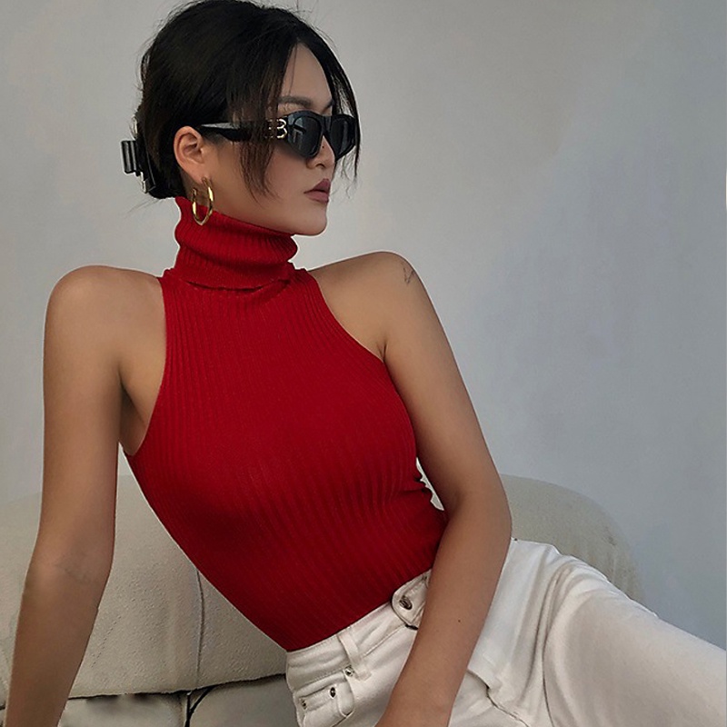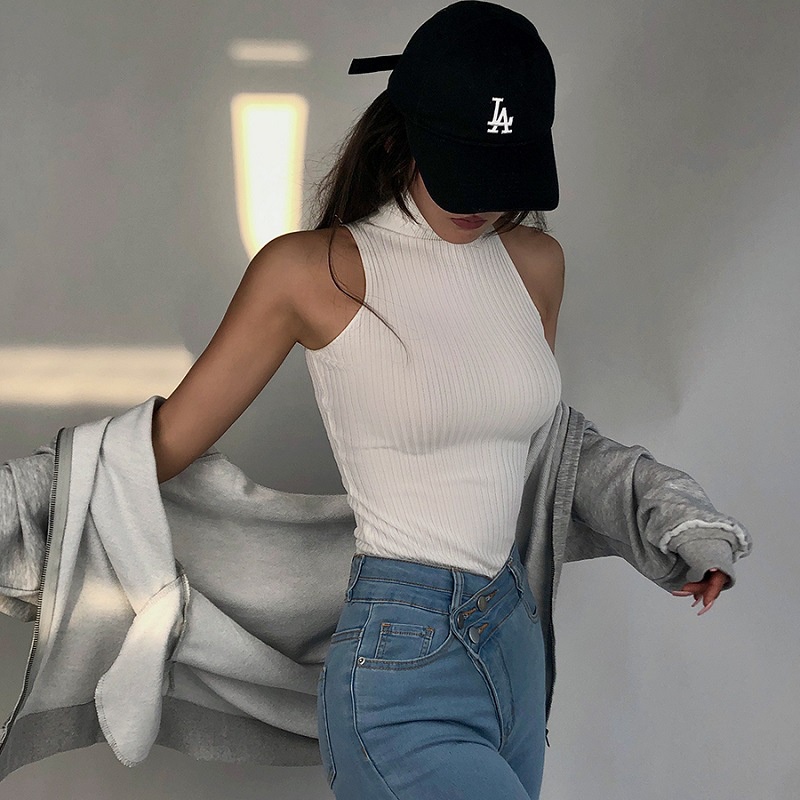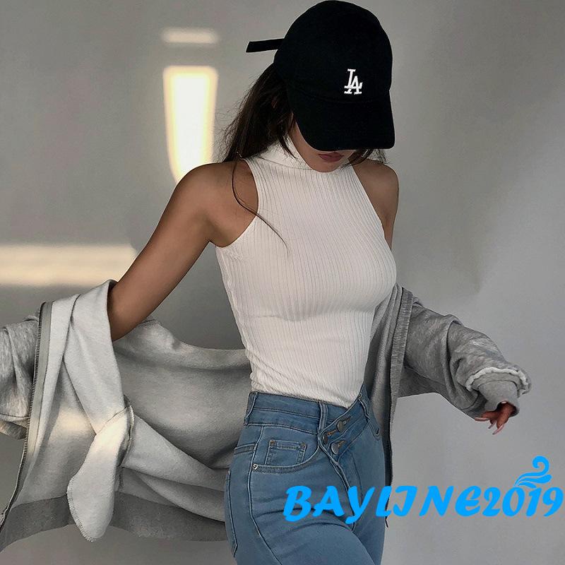 BAY-Women Summer High Neck Tank Tops Sleeveless Solid Color Knit Ribbed Slim Fit Tank Tops