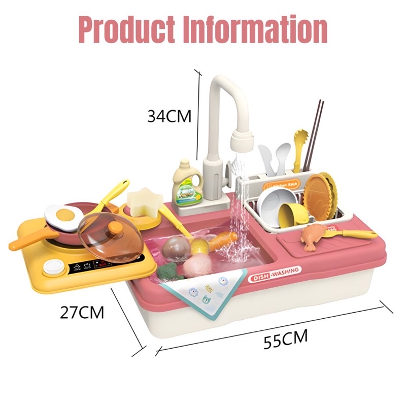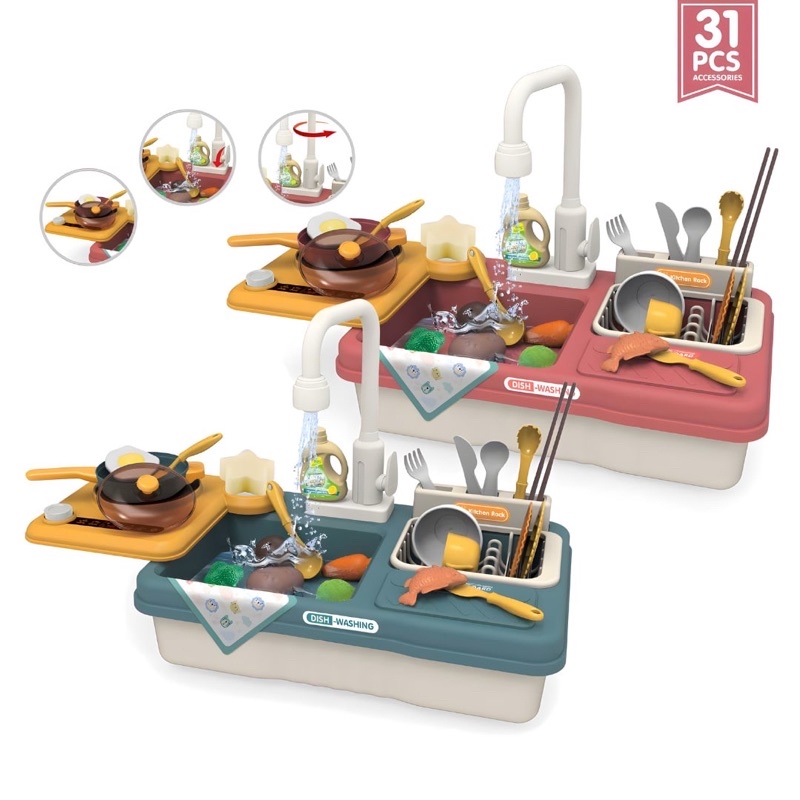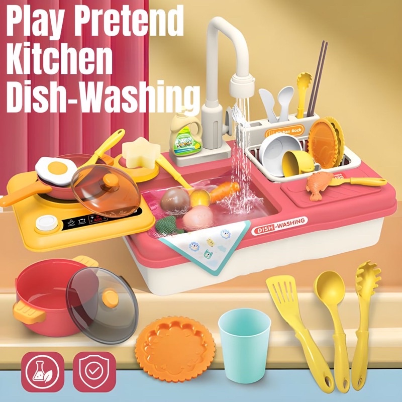 BB Kitchen Dish Washing Play Set with Running Water Kitchen Sink Toy for Kids