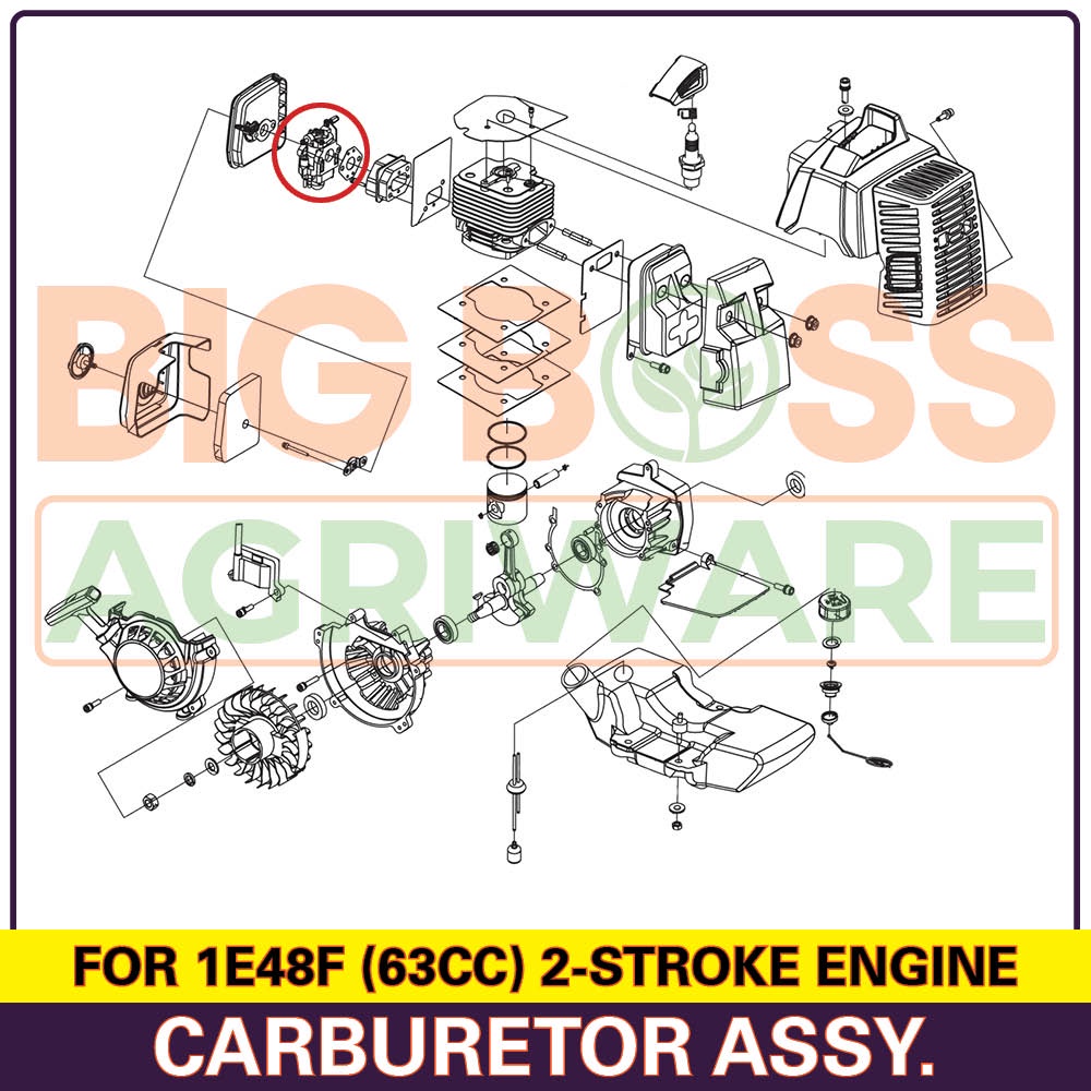 BBA Carburetor Assembly for 63cc / 1E48F 2-Stroke Engine Earth Auger, Tiller