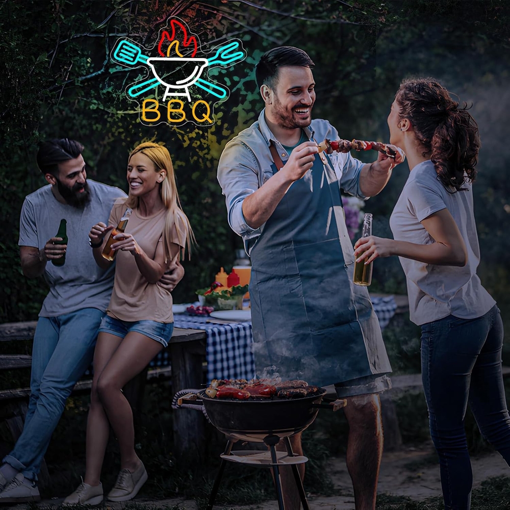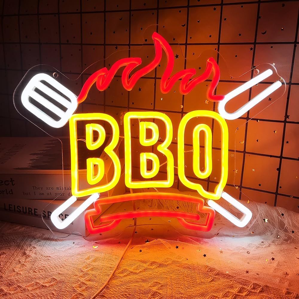 BBQ Neon Signs Dimmable LED BBQ Signs for Wall Decor, USB Powered Bright Barbecue Neon Lights for Beer Pub Man Cave Party Club BBQ Shop Restaurant Showcase Window
